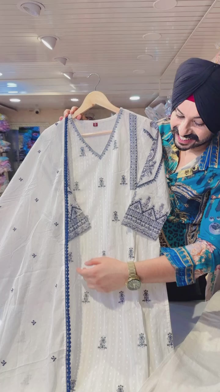 Moon White Fully Embroidered Pure Cotton suit with Beautiful Mal Cotton Duppata