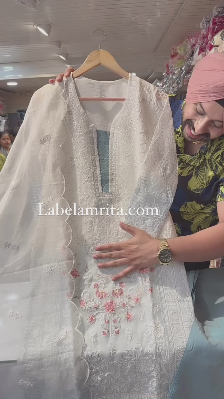 Moon White & light Blue Organza Pakistani heavy Embroidered Suit