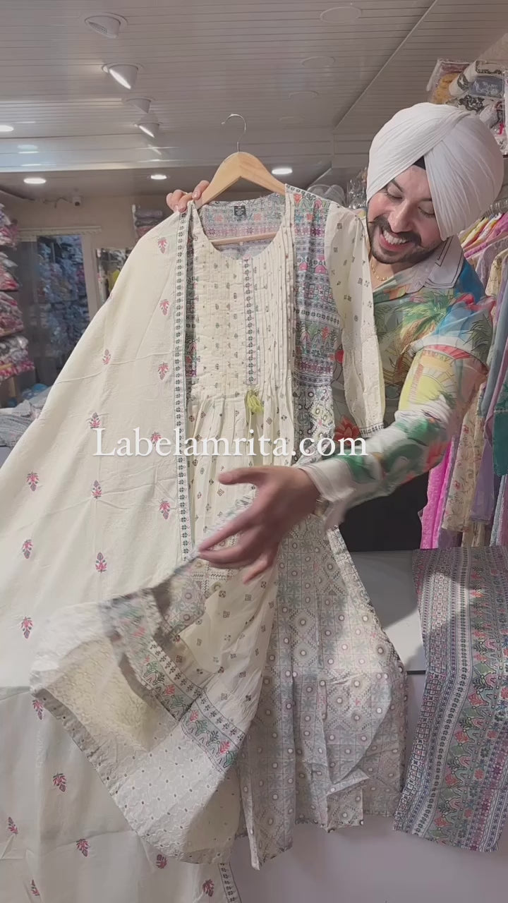Moon white & multicolored Pure cotton Nyra cut Suit with Embroidered Duppata