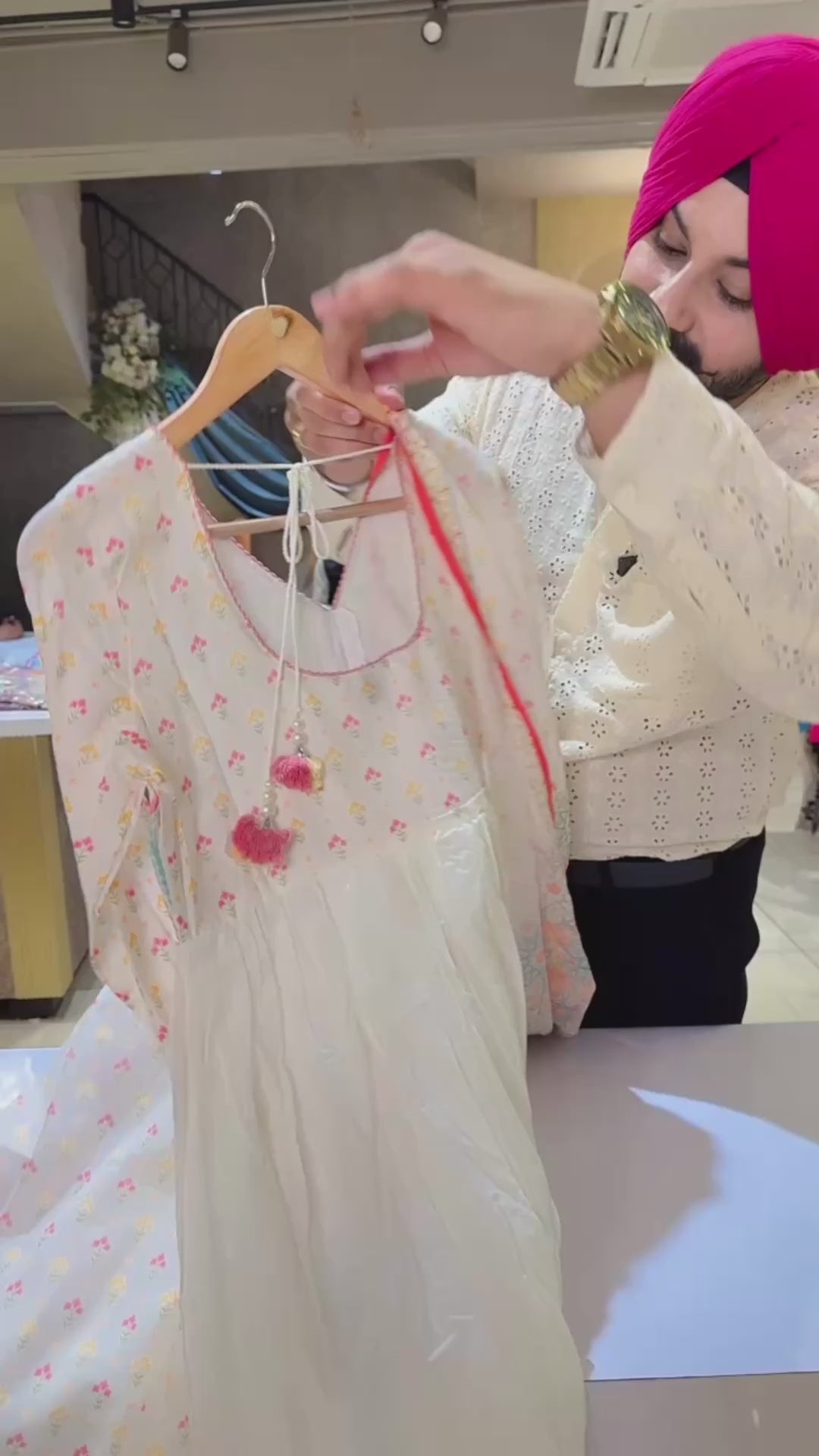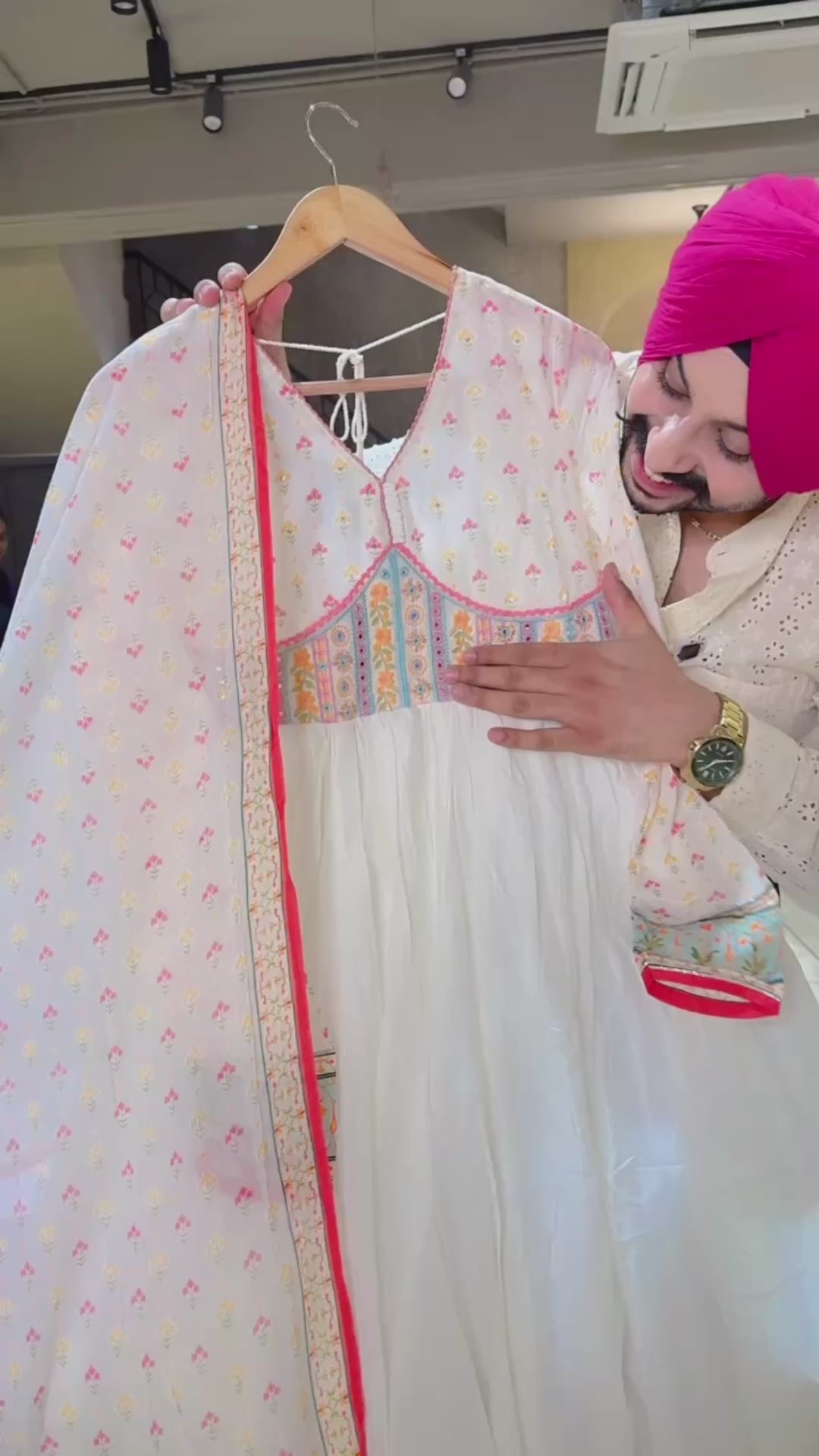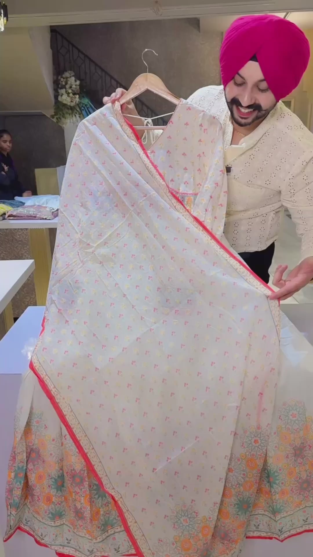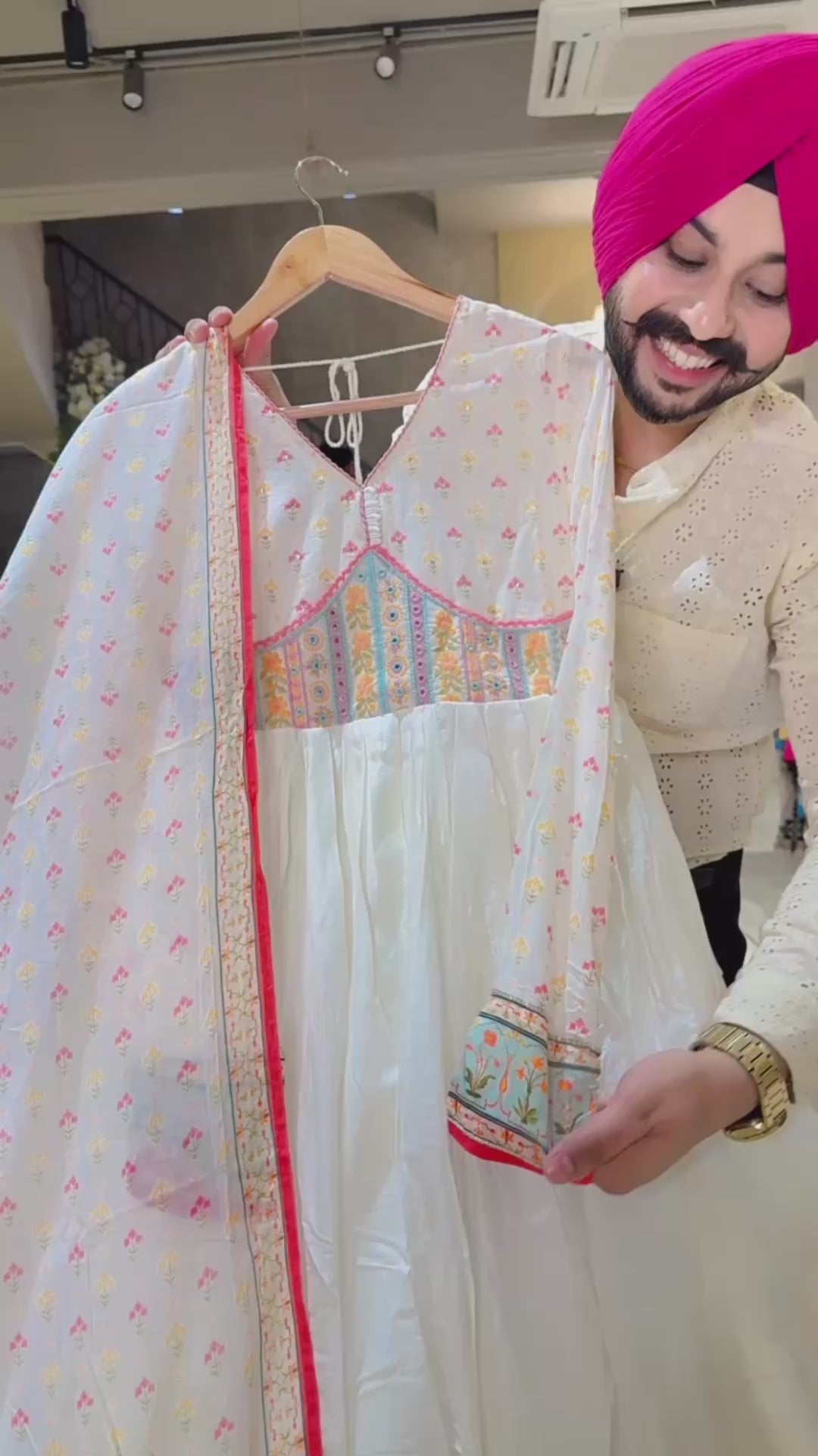 Moon White Pure Mal Cotton Floral Print Anarkali Gown With Beautiful Embroidery work on the