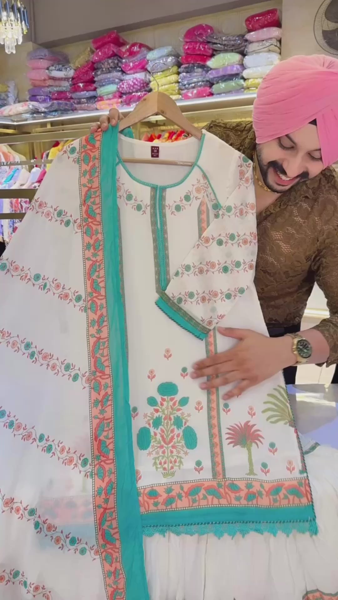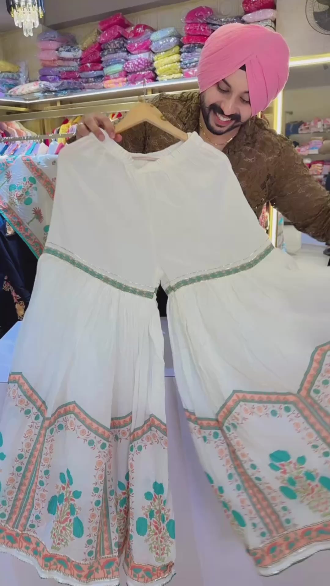 Moon White & Rama Mal Cotton Full Flair Garara Suit with Mal Cotton Duppata