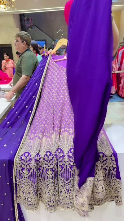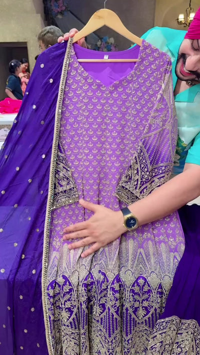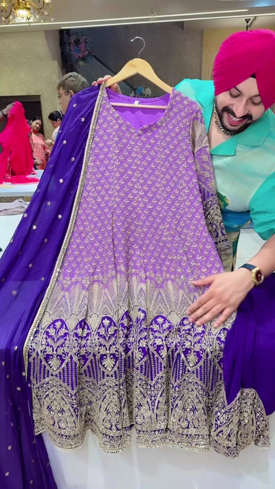 Lavender & Purple Georgette Heavy Embroidered Party Wear Anarkali Suit with Beautiful Sequins Work Duppata