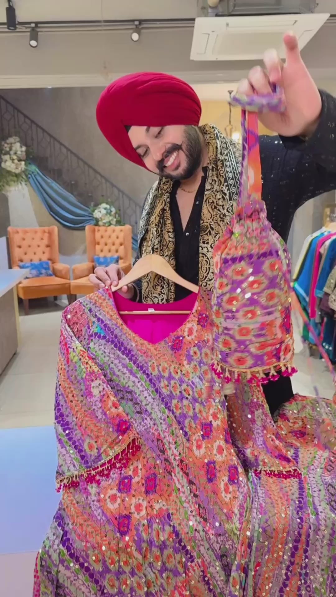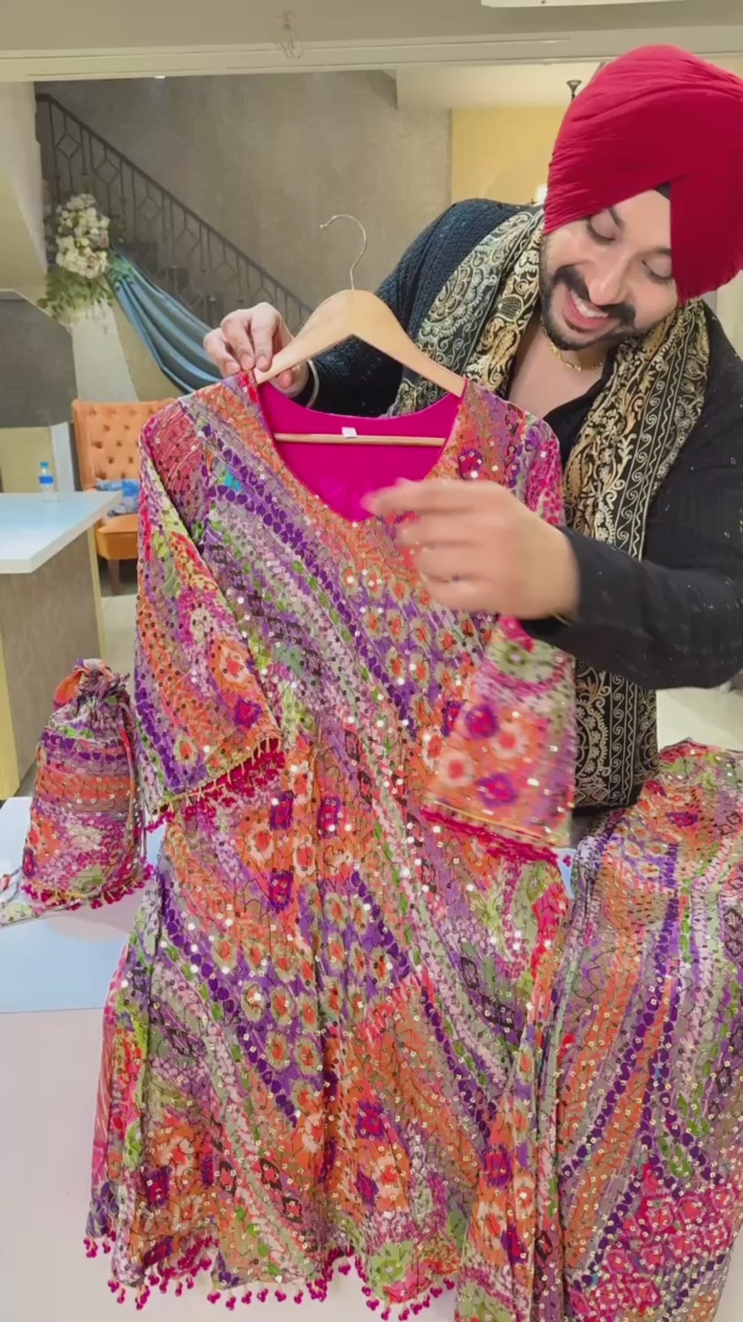 Multicolored Georgette Fully Sequence work Paplum Bell Bottom Coord set with Cute Potli