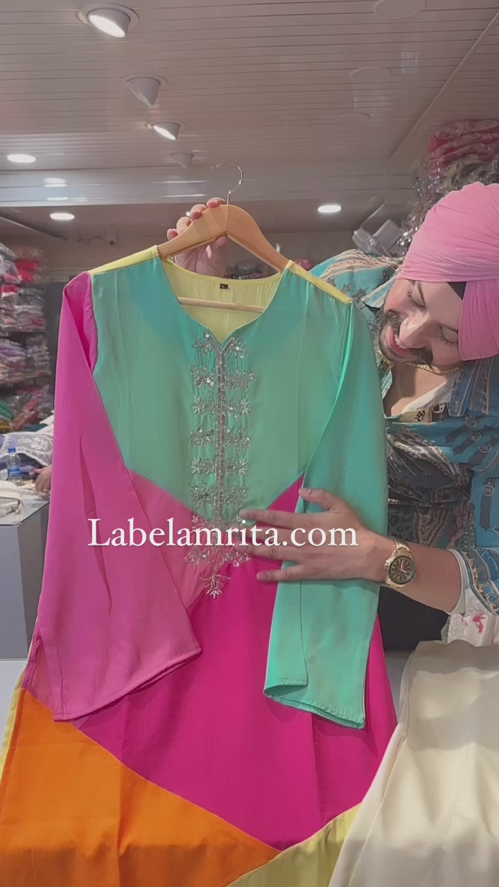 Multicolored Vibrant Coord in Imported fabric with Handwork on neck