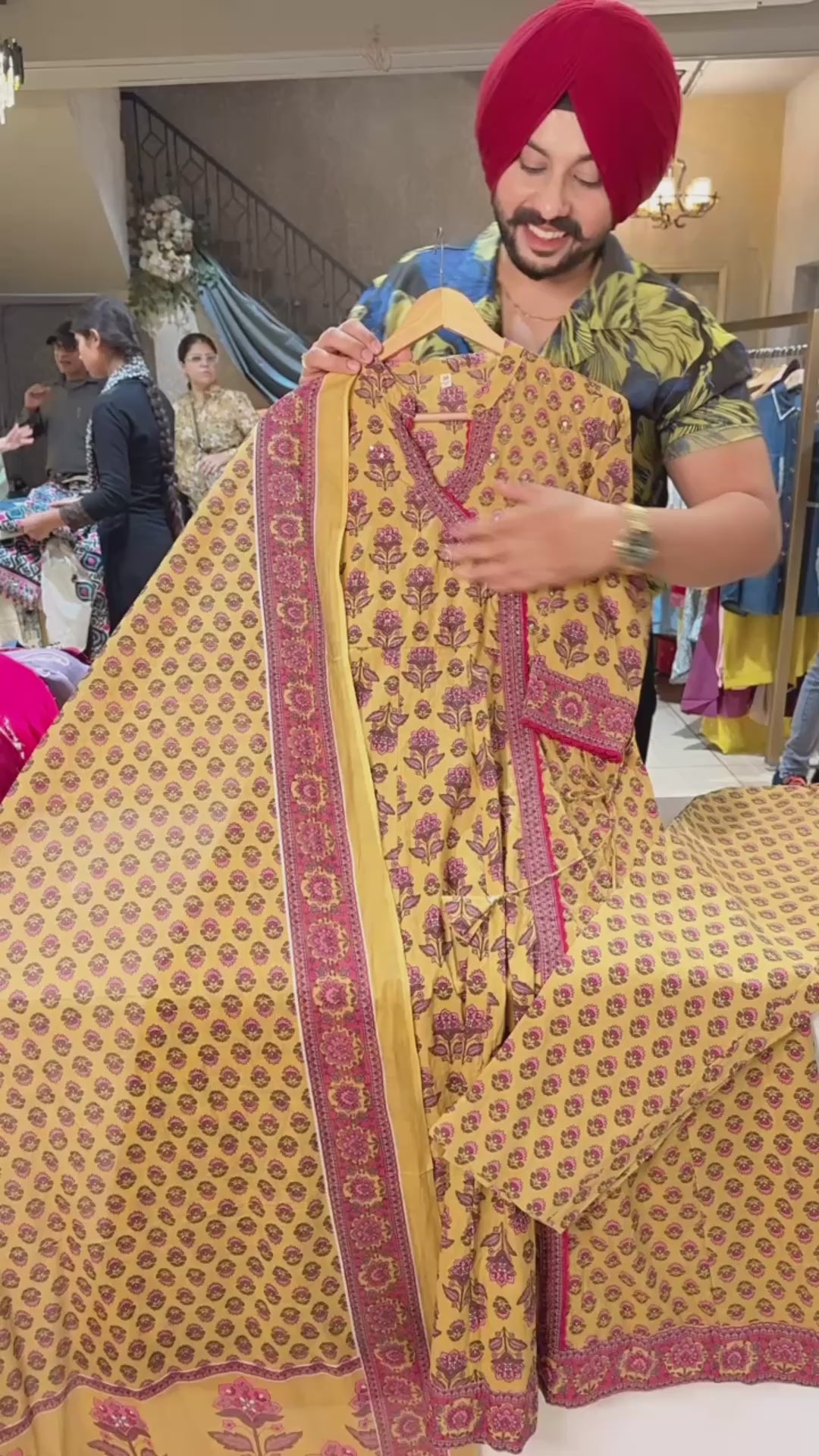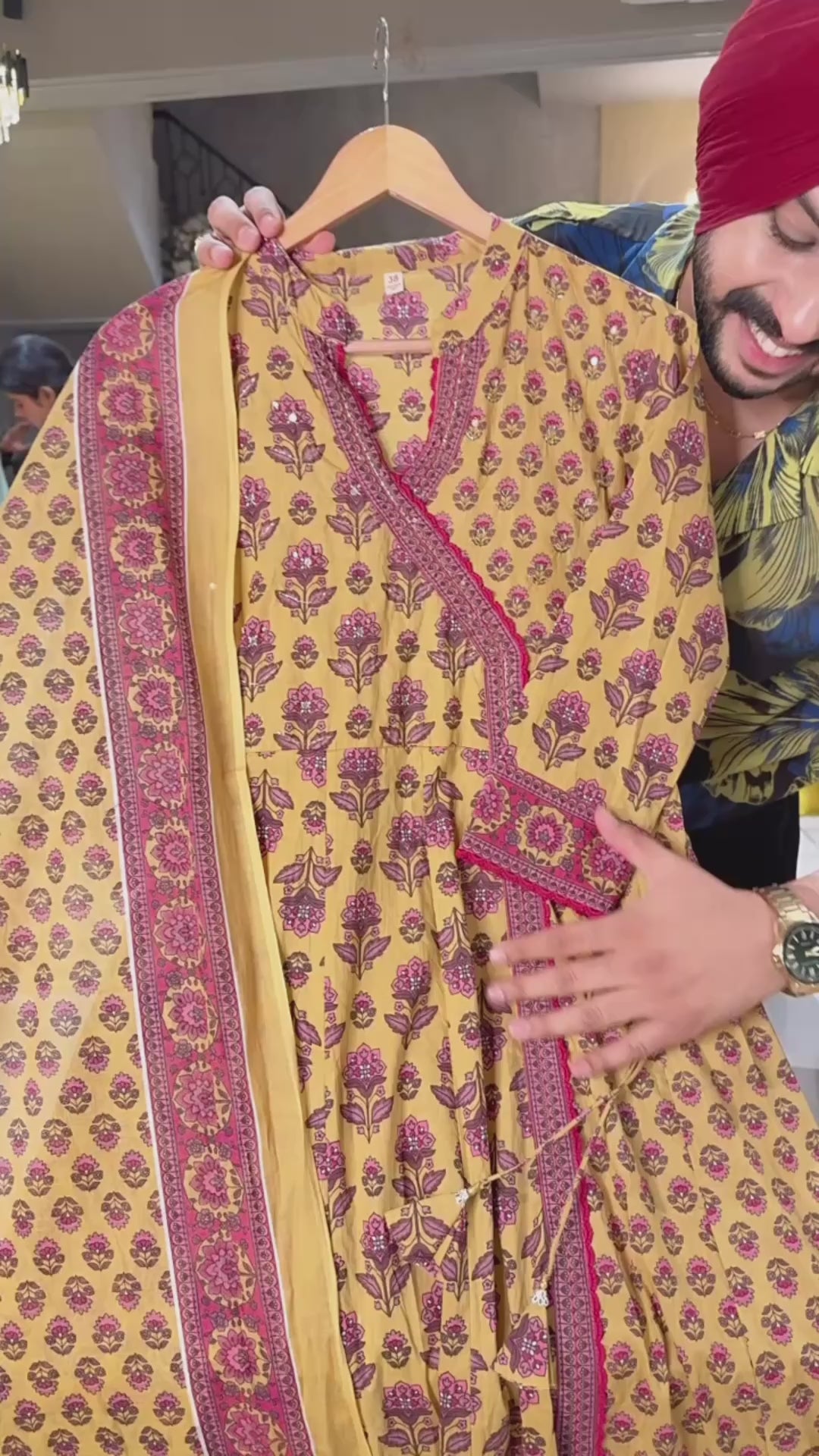 Light Mustard Cotton Angrakha Anarkali Suit with Beautiful Duppata