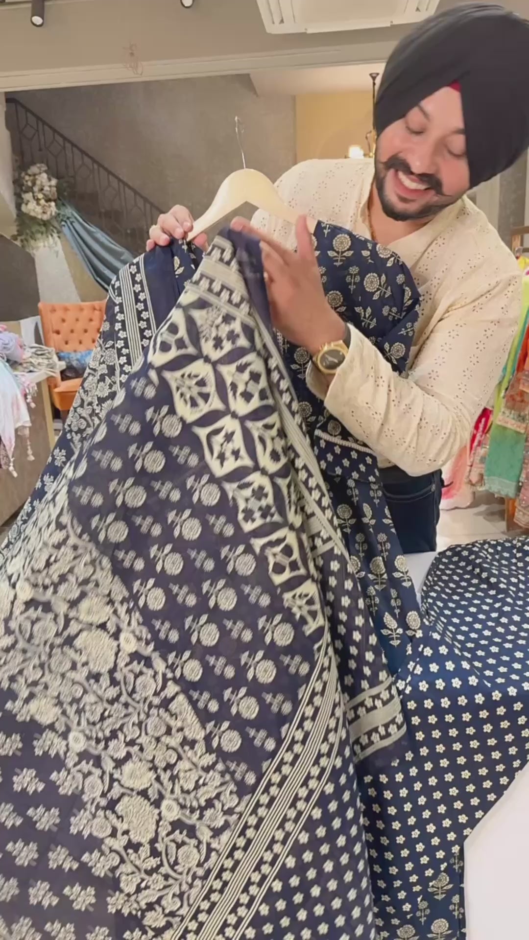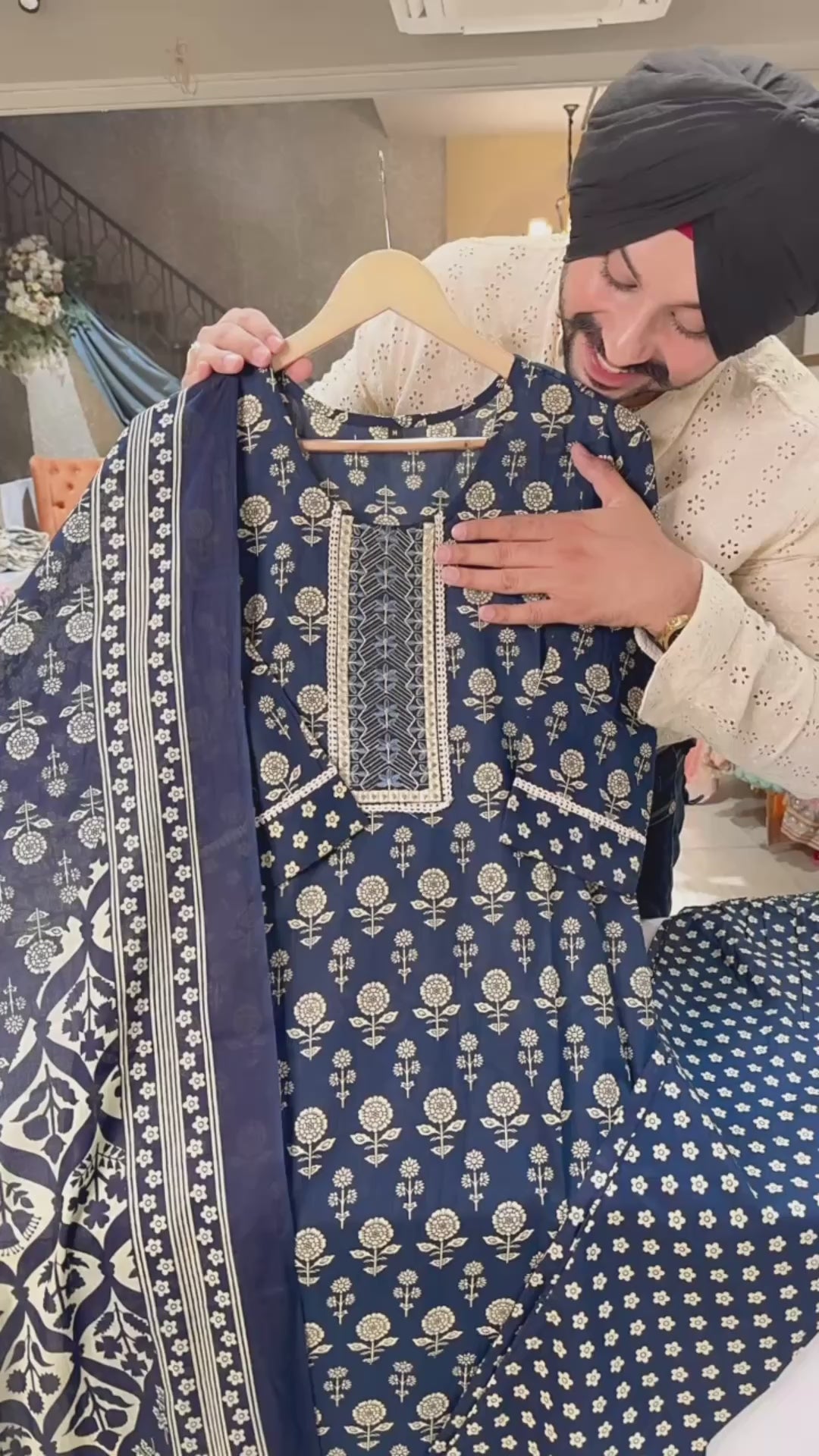 Navy Blue Pure cotton Office Wear suit with Sleek embroidery Work on neck