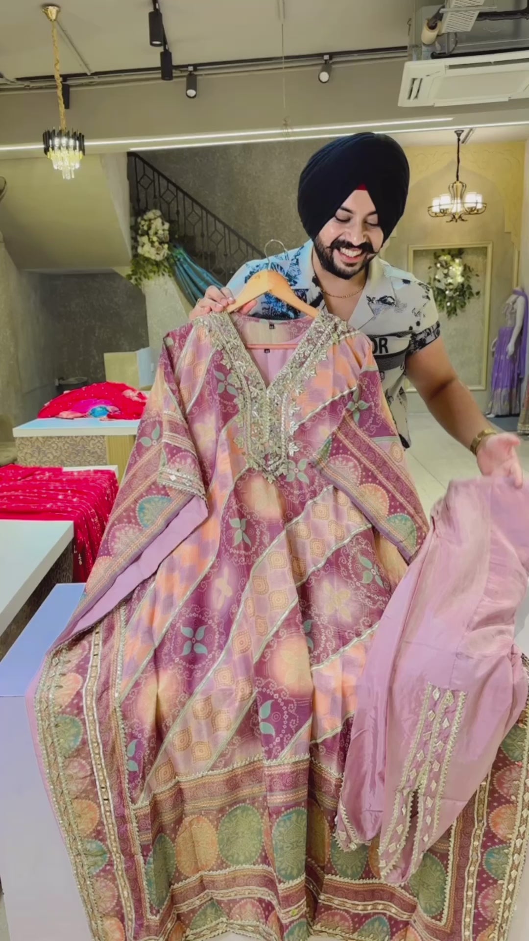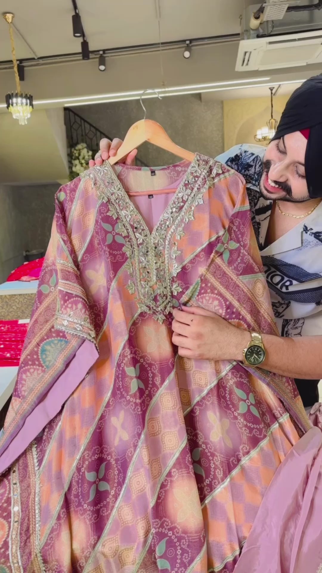 Onion Pink Shimmer organza Heavy Gotta work Kaftan Coord set with Stylish tulip pants