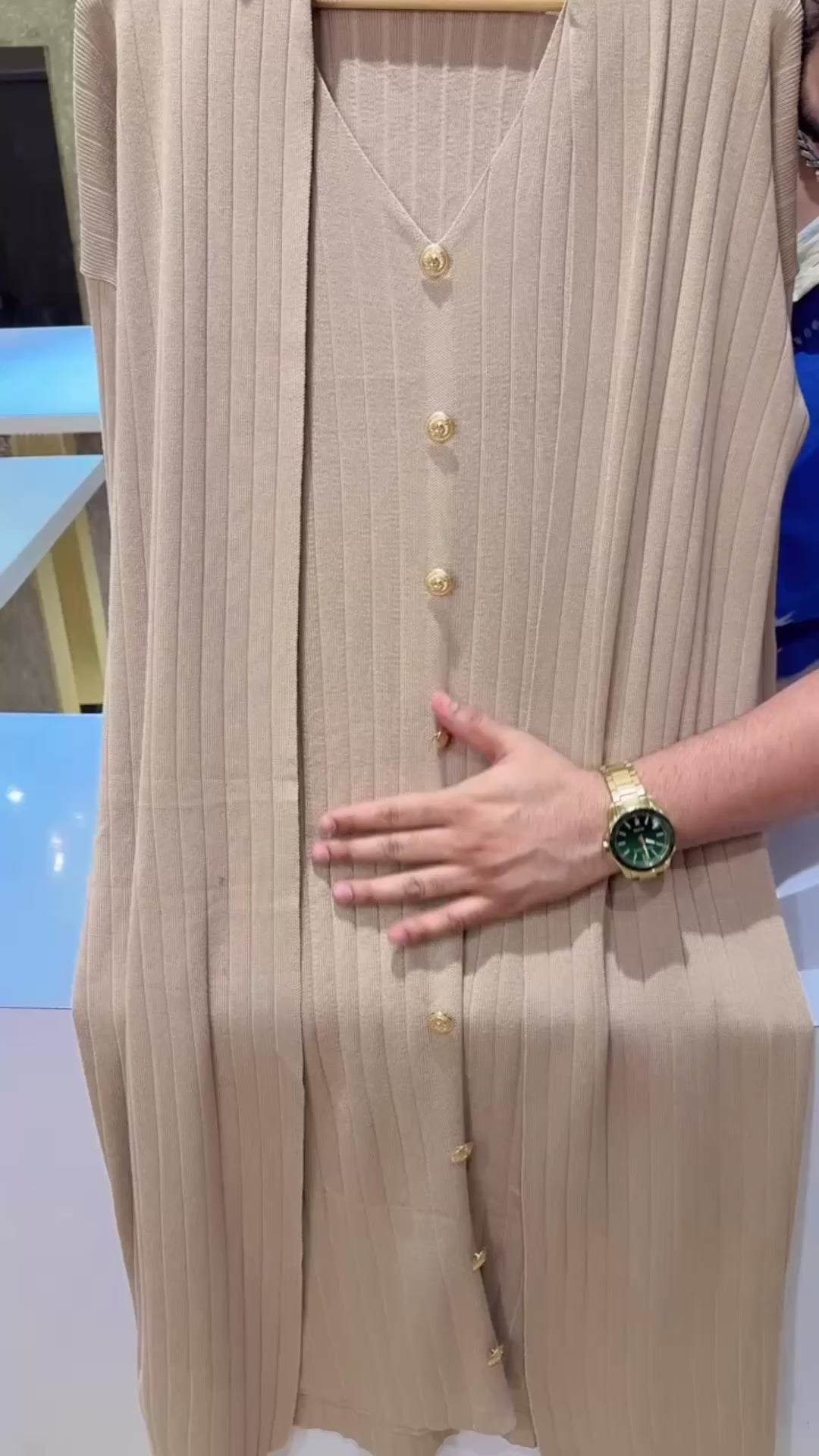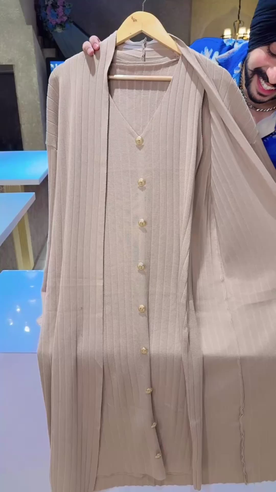 Nude beige Fully Stretchable Imported Woolen Long length Dress With stylish Woolen Shrug