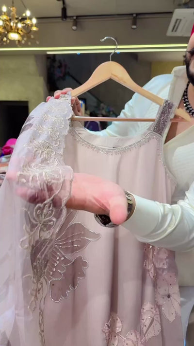 Nude Colour Premium Chiffon Girlish Hand embroidered Strap Cut Sleeves Suit with Soft Organza Duppata