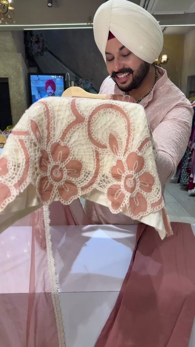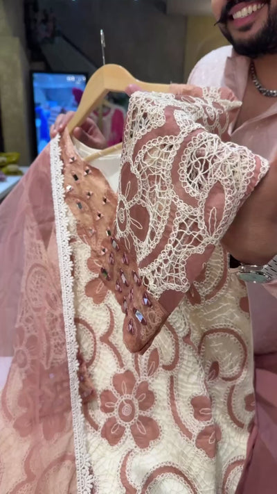 Nude English colours kora Cotton Heavy Crochet & mirror work Indowestern Suits with Beautiful Organza Duppata IN