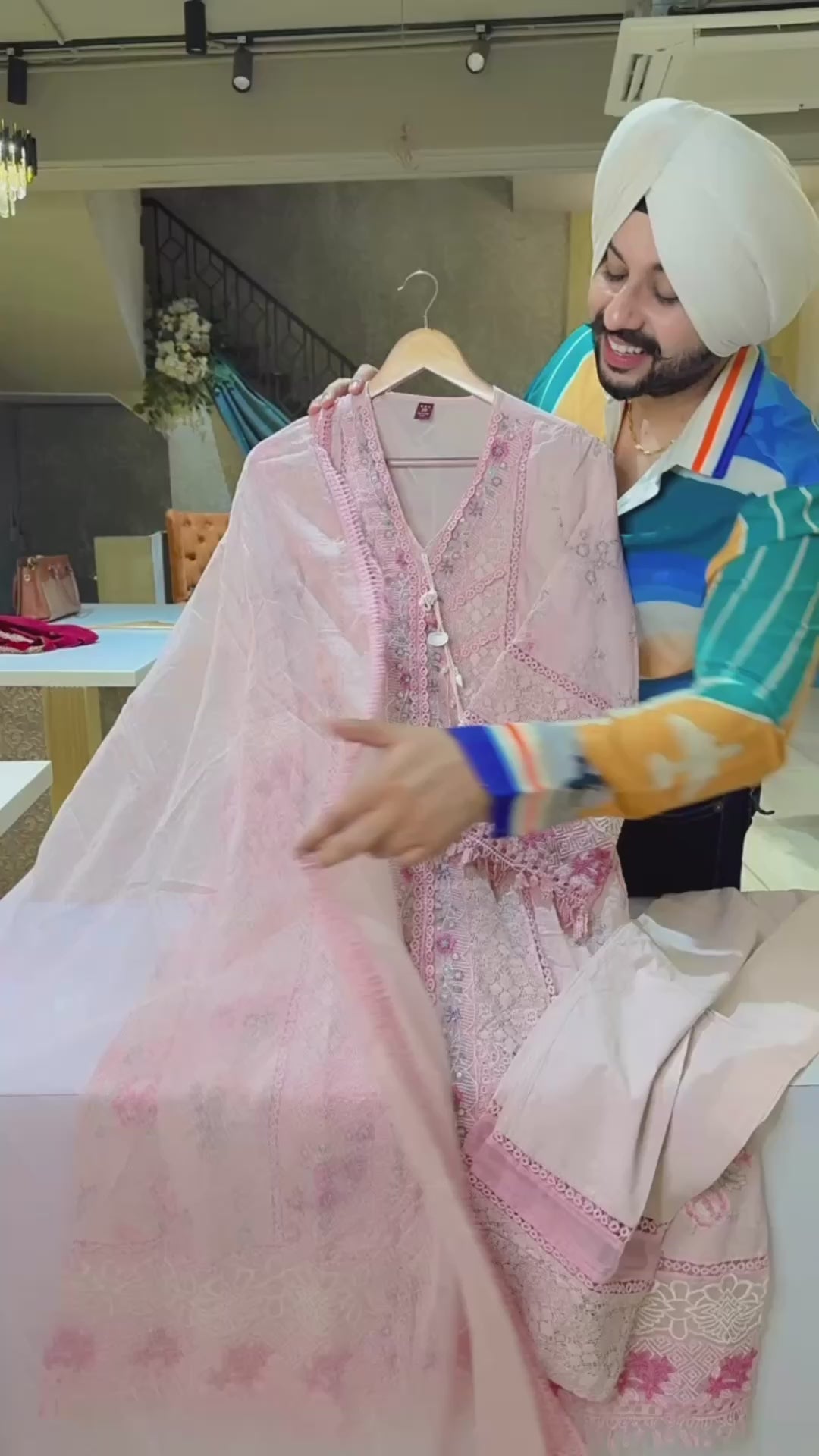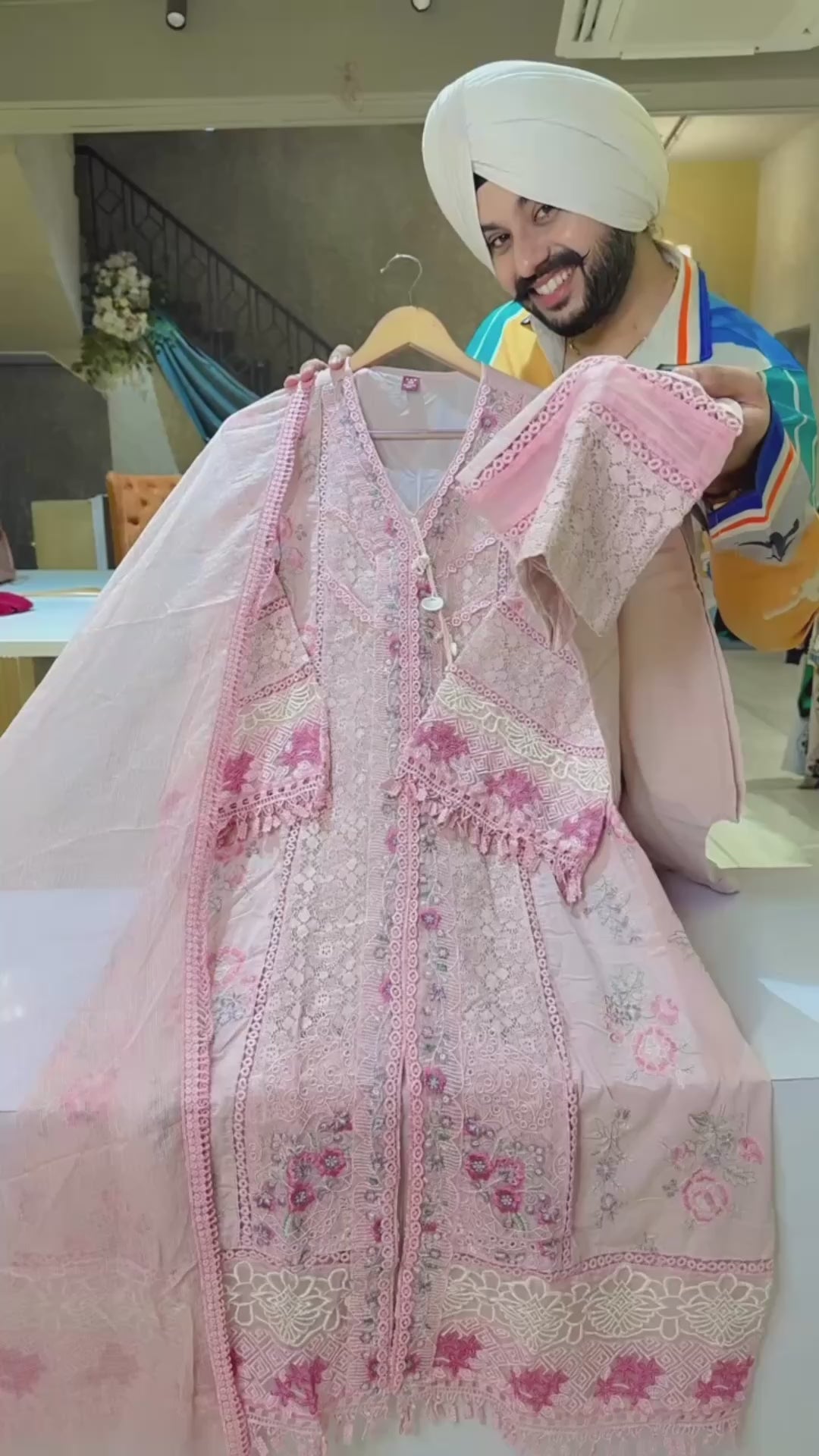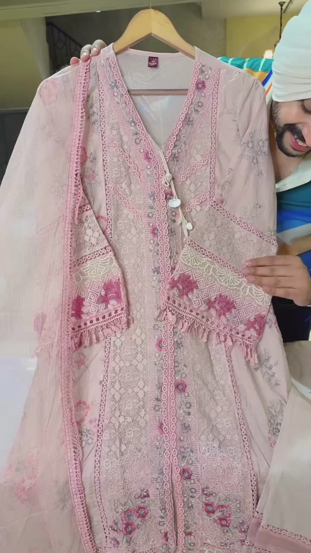 Nude pink Mal Cotton Pakistani Embroidered A-line Suit with Kota Doria Duppata