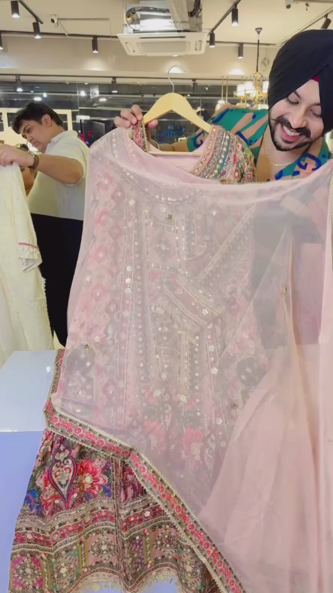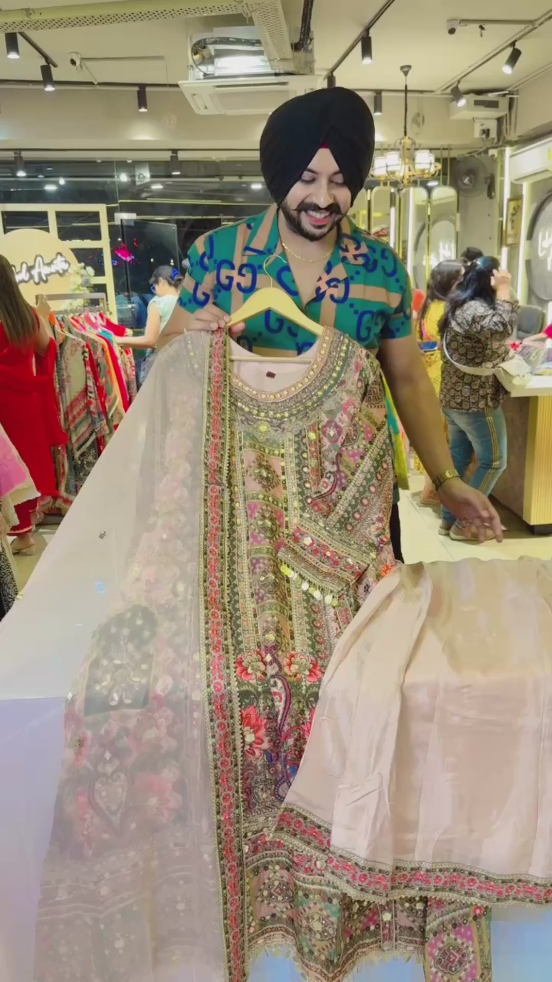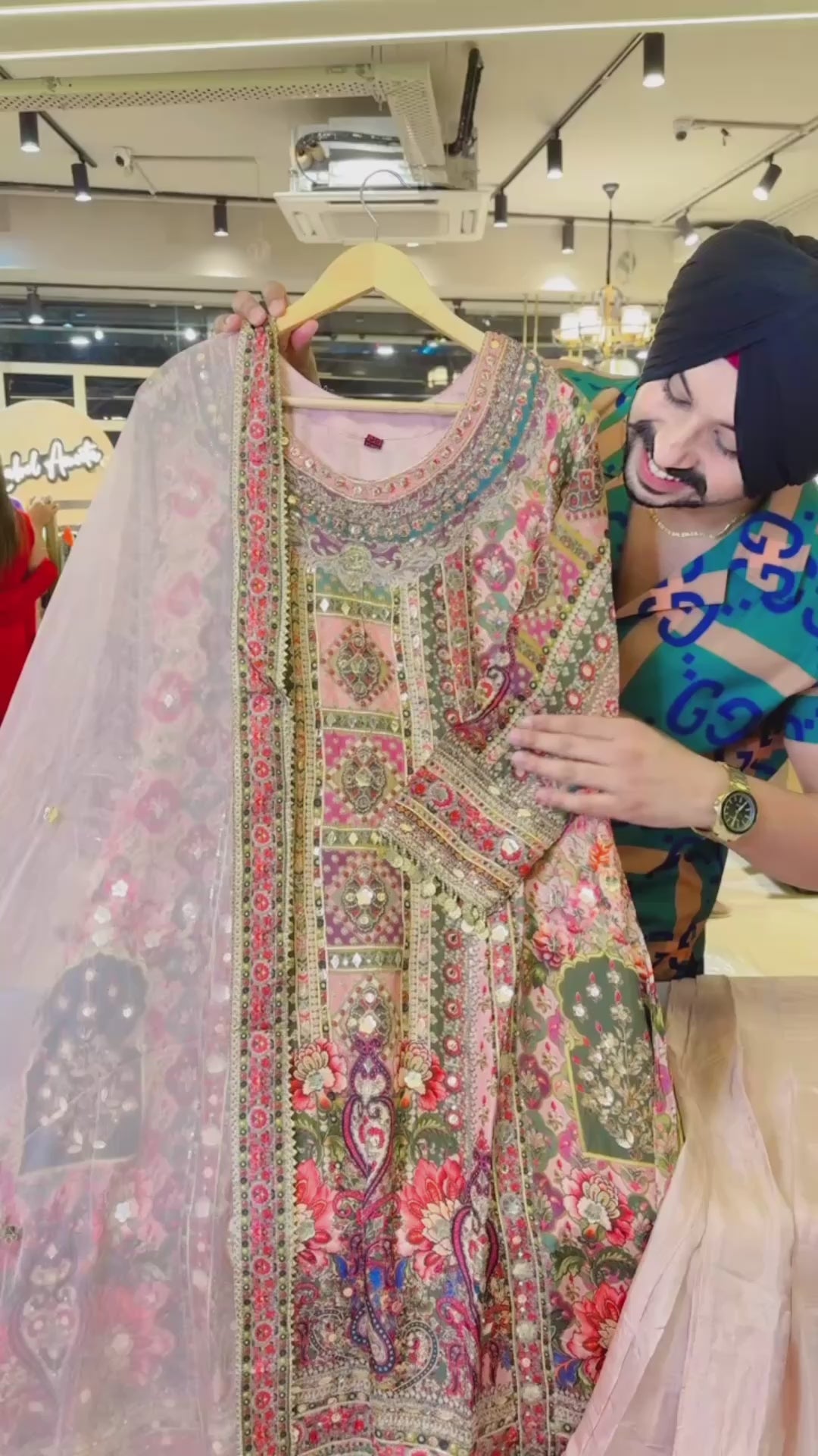 Nude pink Crepe Fully embroidered Pakistani A-line Suits with Stylish Azaaro