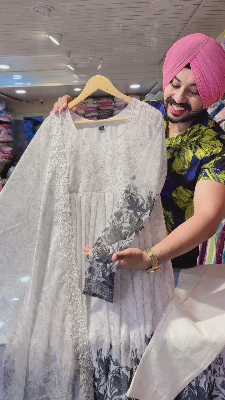 Off white Chiffon Anarkali suit with Beautiful Embroidery Work on neck & organza Duppata