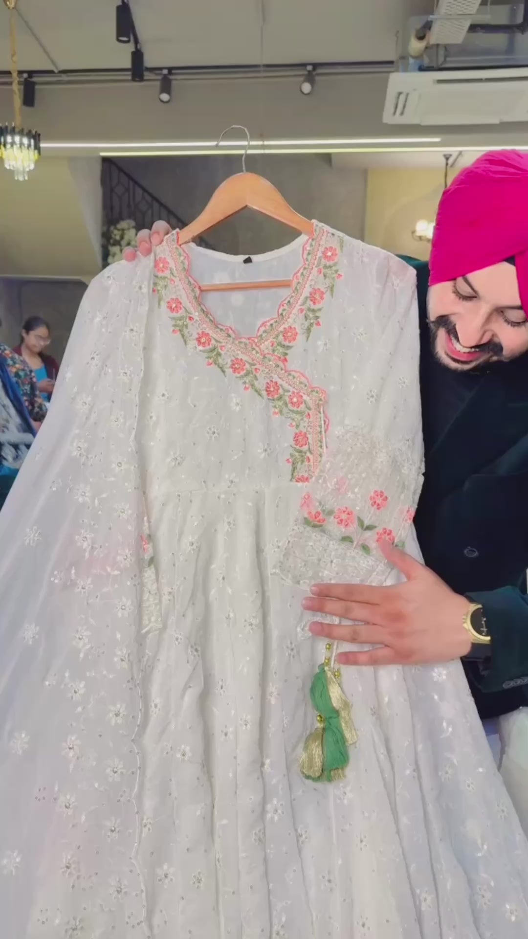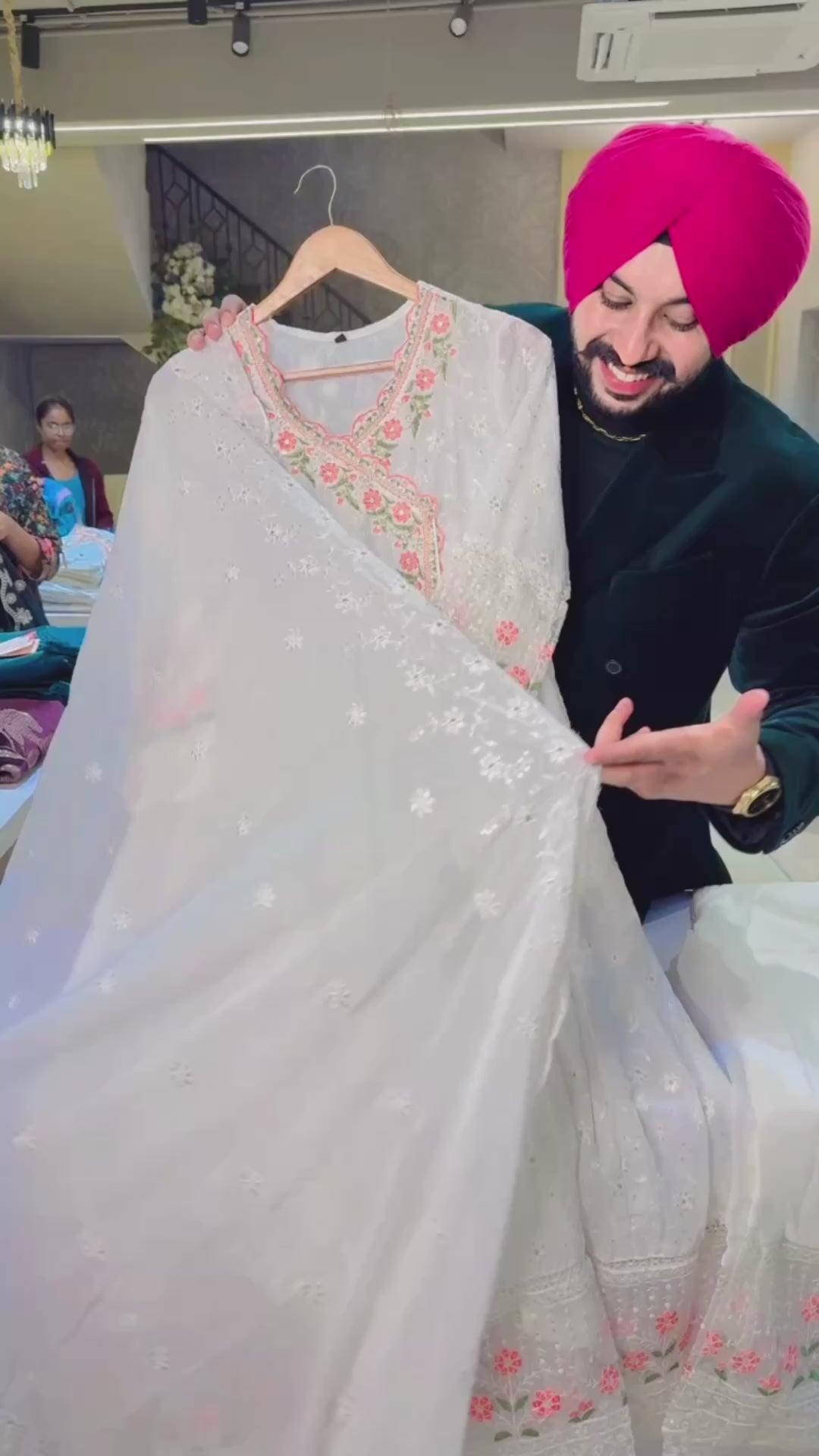Moon white Georgette Fully embroidered Angrakha Anarkali Suit with embroidered Duppata