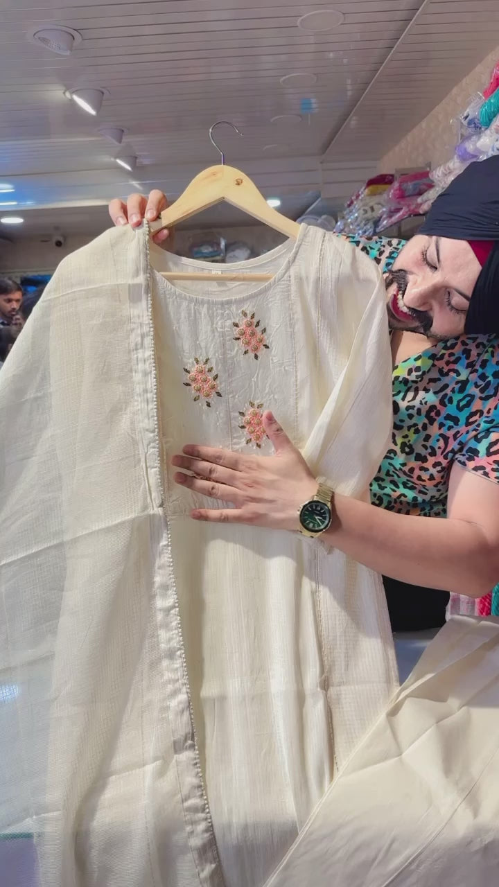 Off White Hand work Kora Cotton suit with Beautiful Kota Doria Duppata