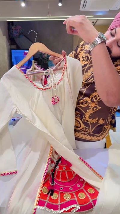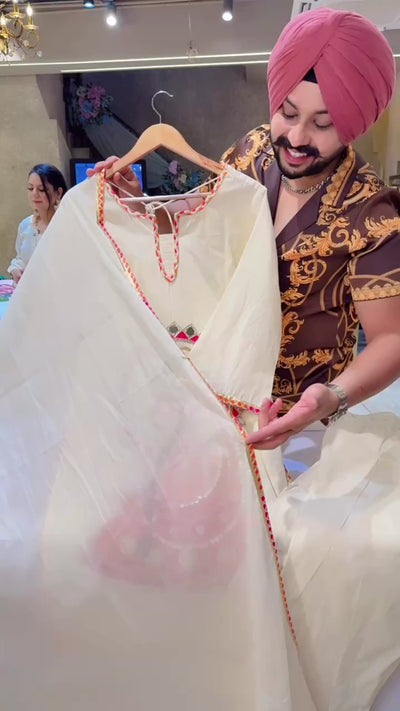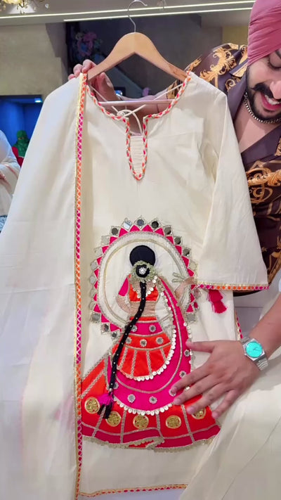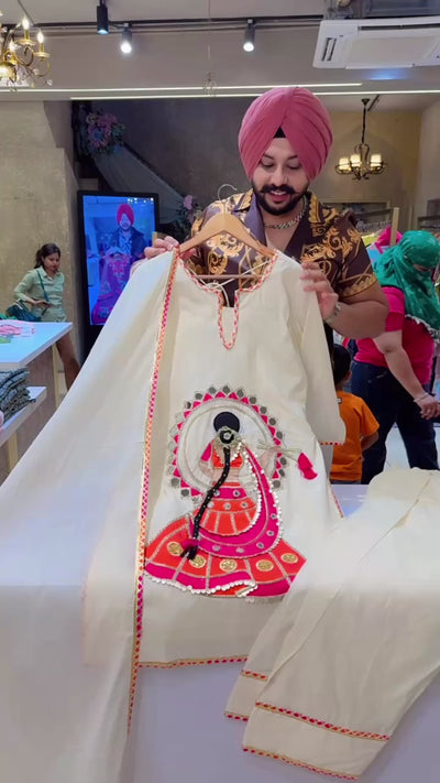 Off white Kora Cotton Doll Hand Embroidered Designer Farshi Salwar Suit
