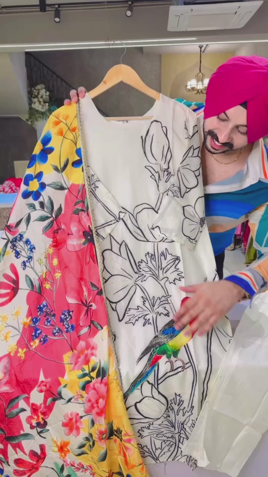 Off white muslin silk Macaw print Straight Suit with beautiful Foral print Duppata