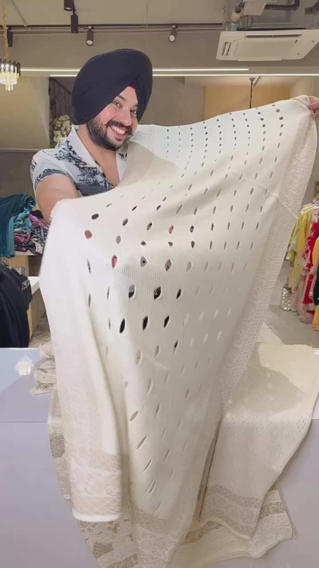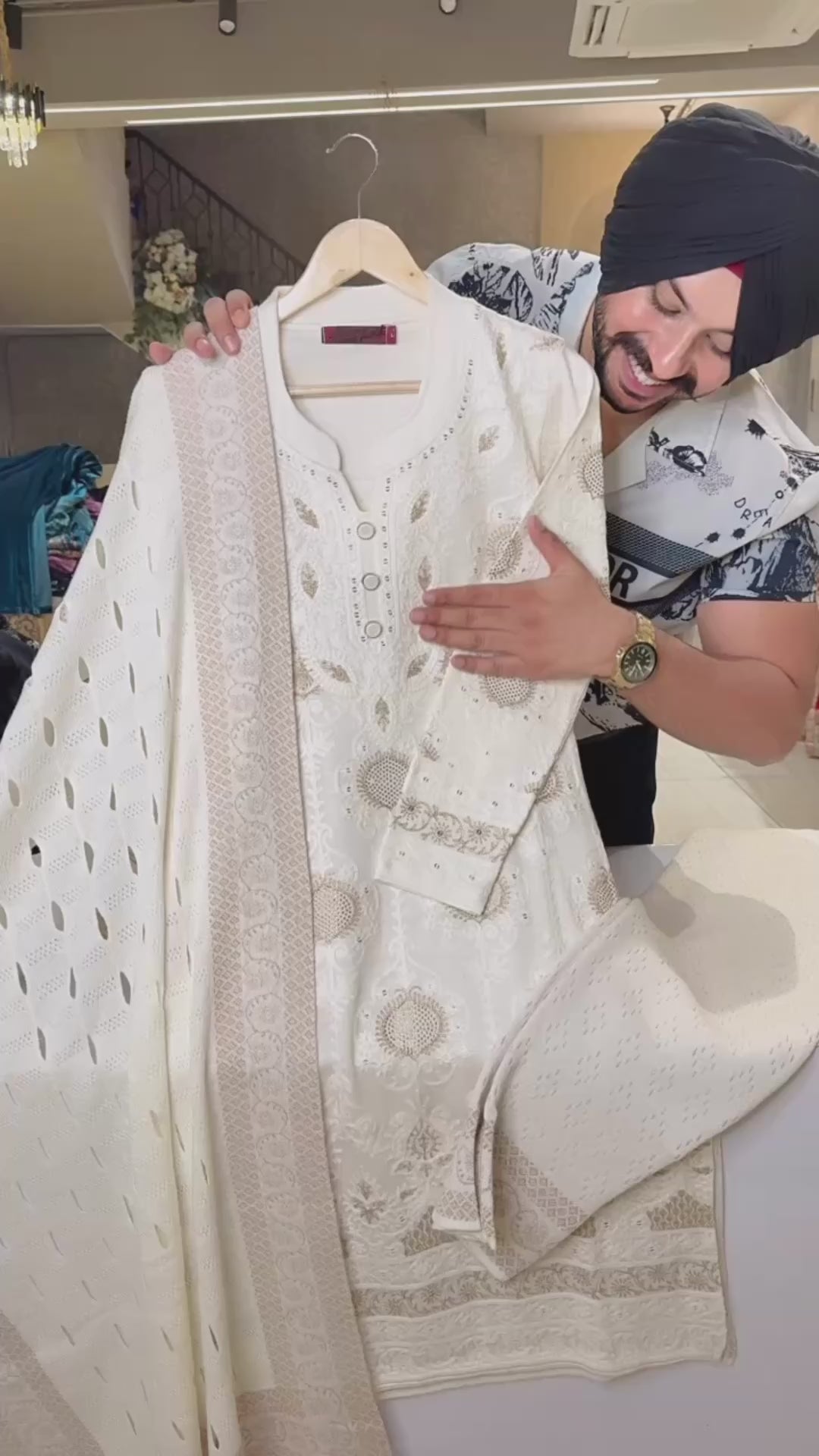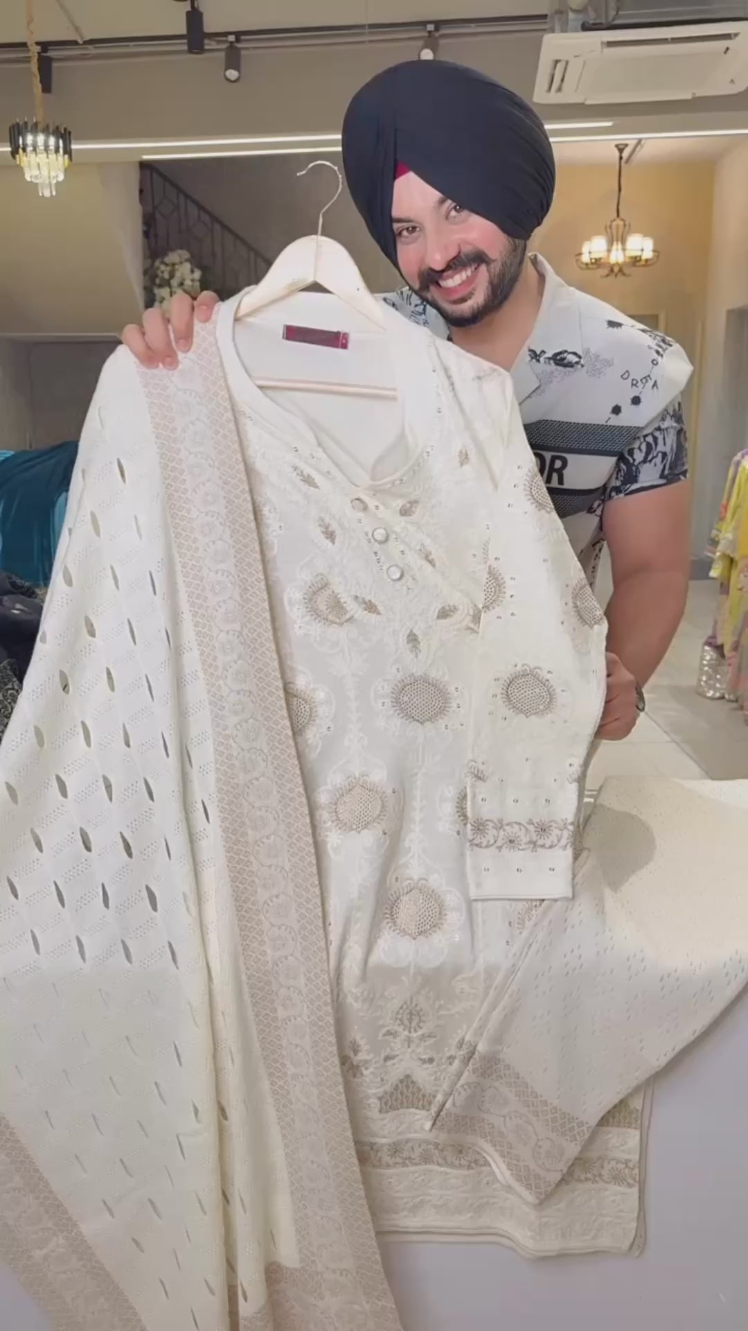 Off white premium Woolen Heavy embroidered Straight Suit with Cut work Duppata