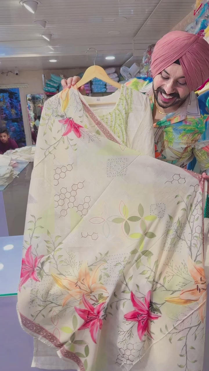 Off white pure Cotton Hand embroidered Suit with Beautiful muslin silk suit