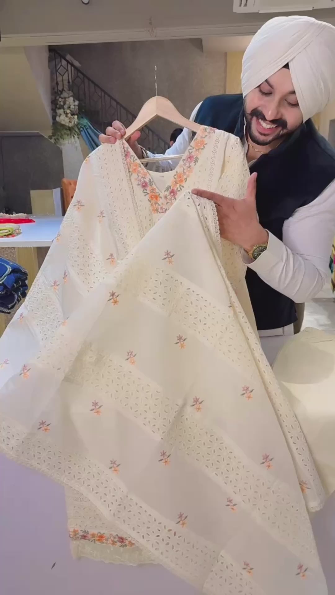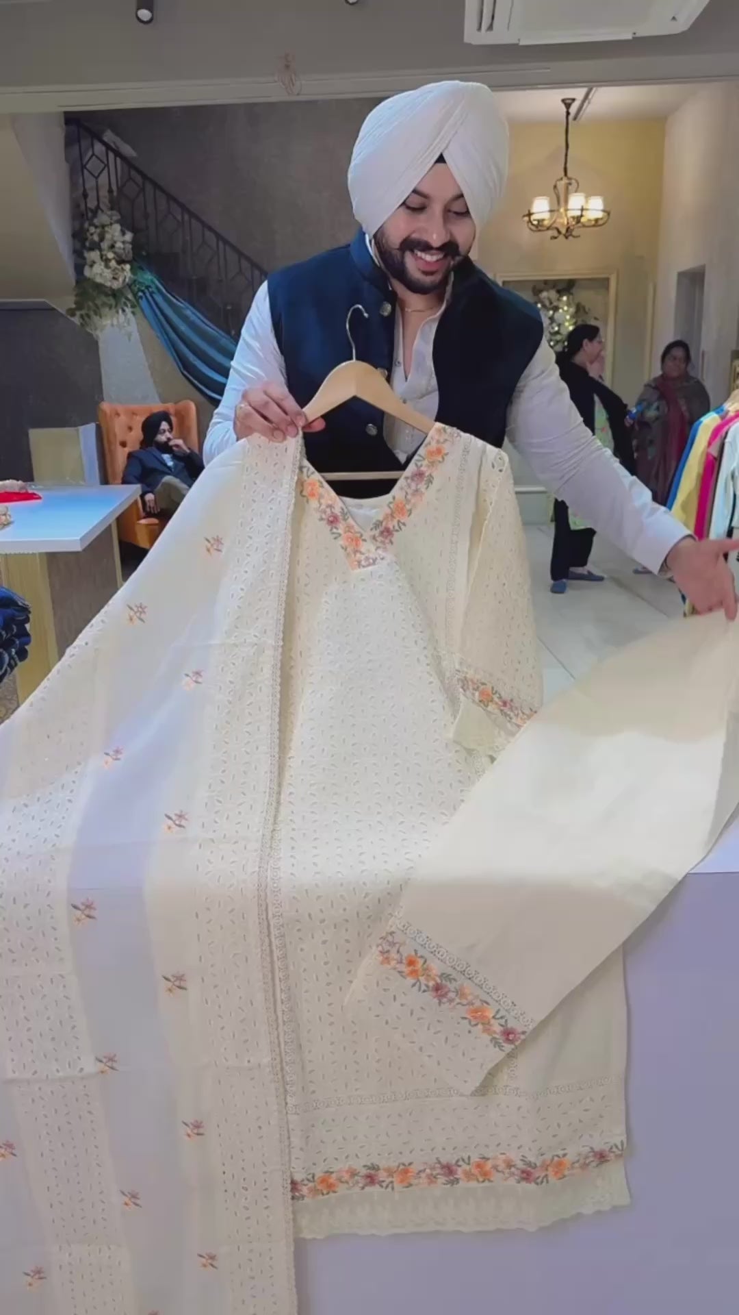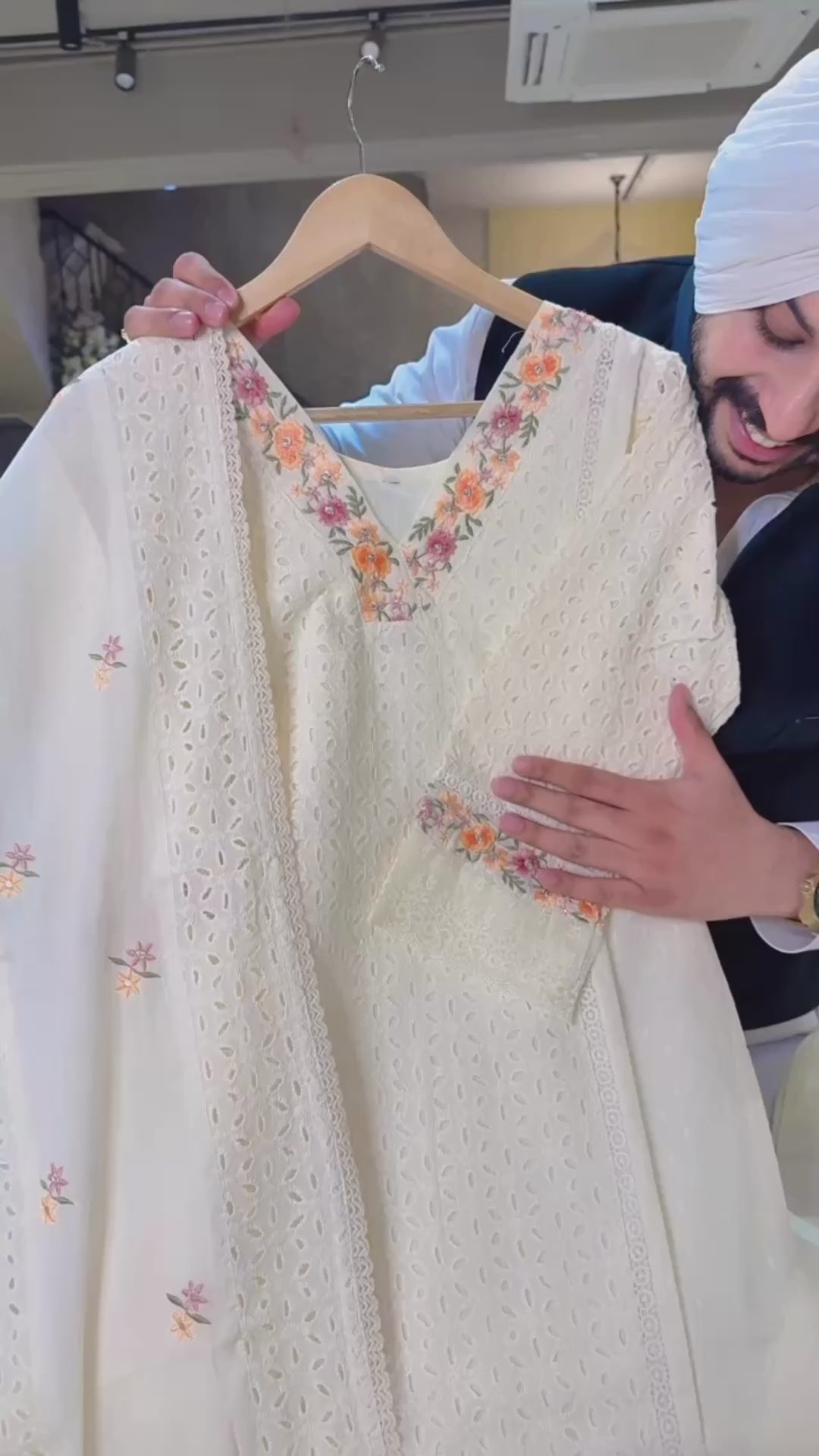 Off white Pure Kora Cotton Embroidered & Shifli Work Pakistani Suit with Beautiful Duappta