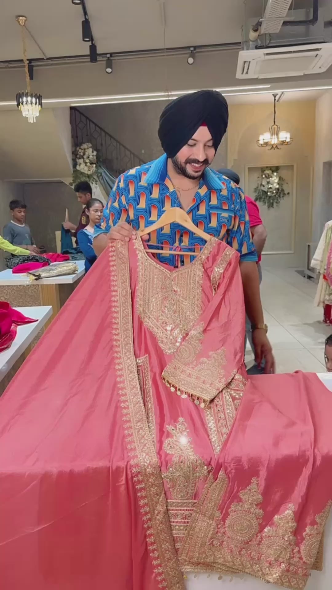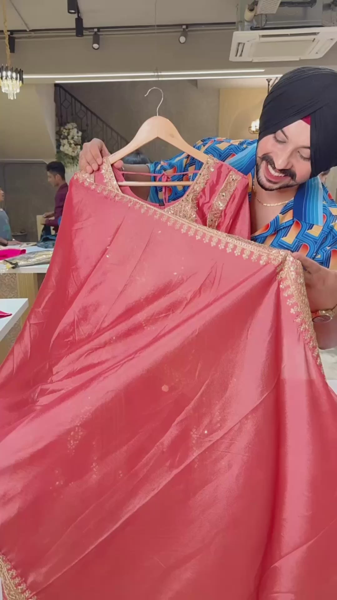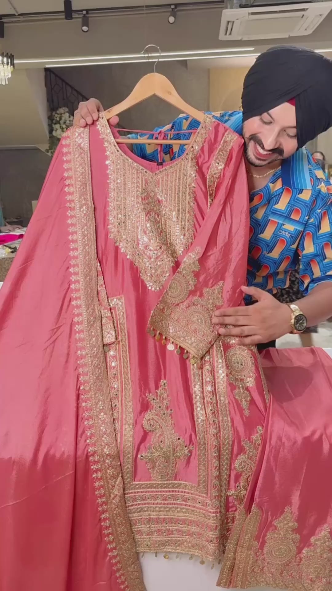 Gajri Chinon Heavy embroidered A-line side Slit Pakistani suit with Bell Bottom slide slit Pants