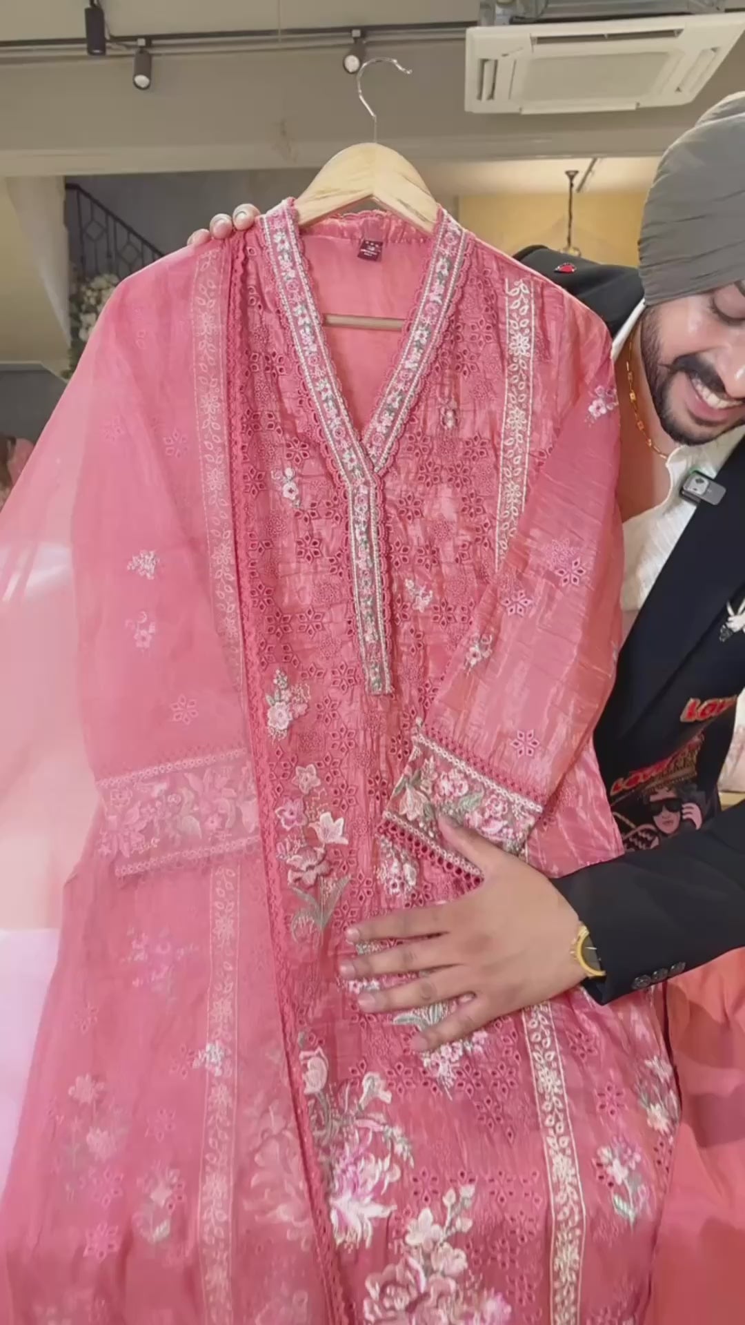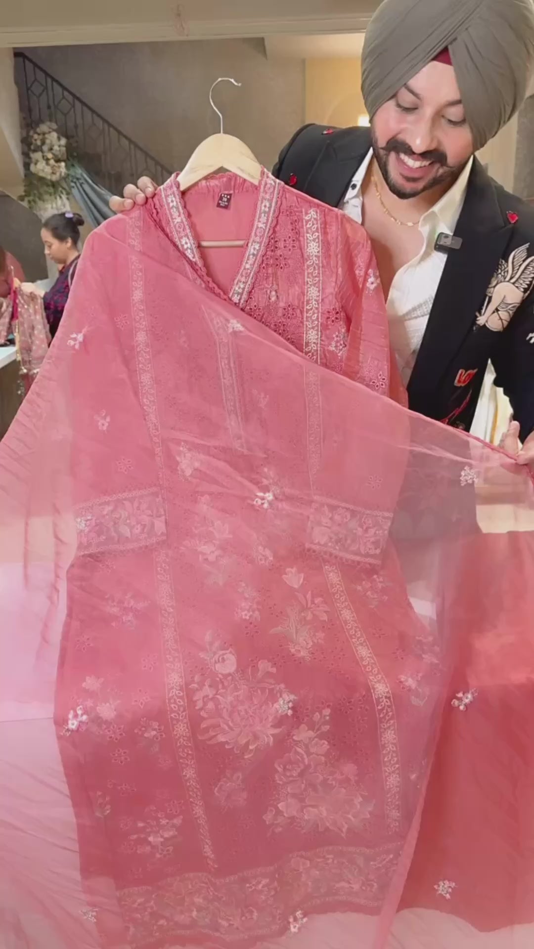 Gajri Pink Crush Organza Heavy embroidery & cut work Pakistani Suit with Beautiful Organza Dupatta