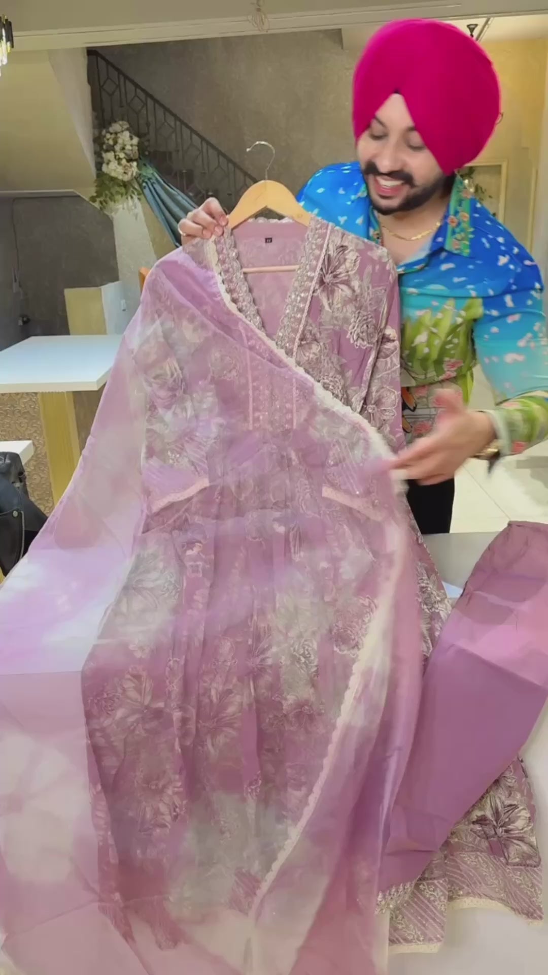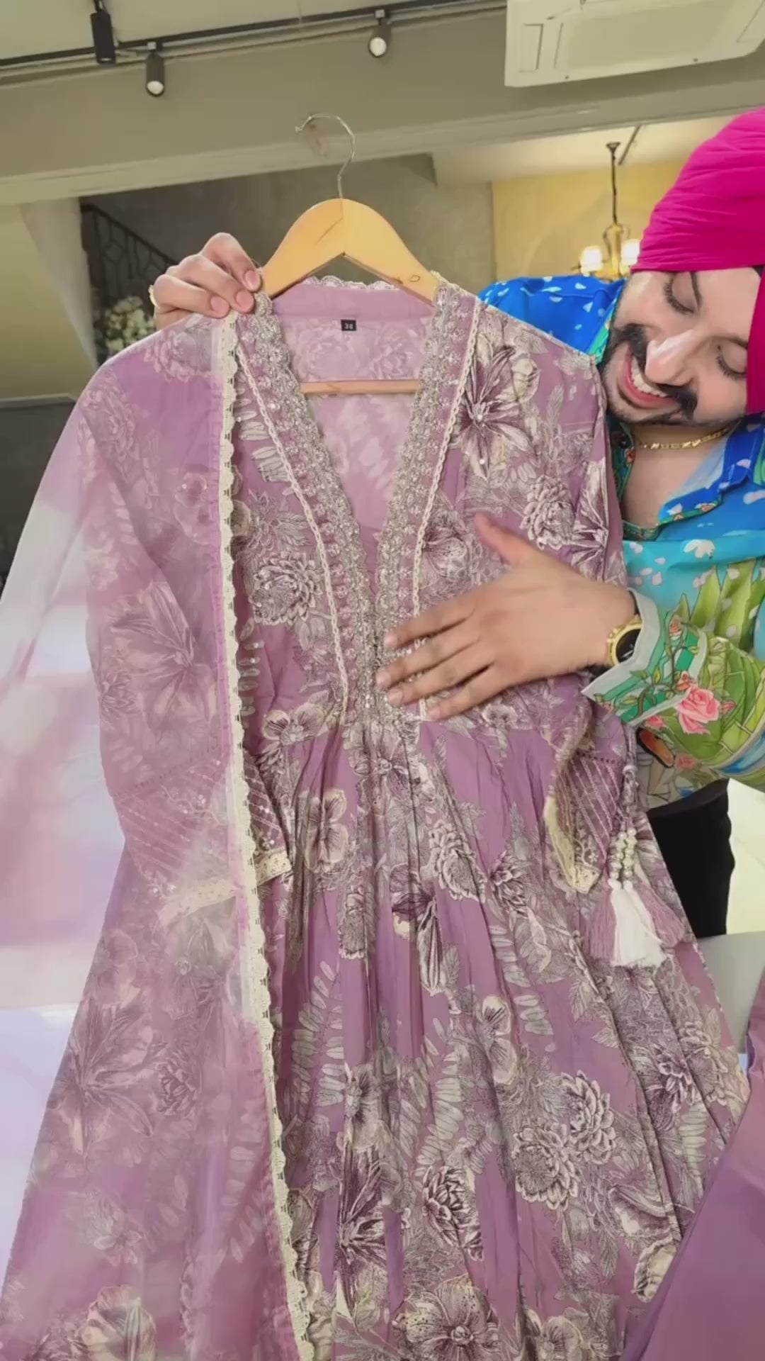Onion pink pure Cotton Embroidered Pakistani Anarkali suit with Beautiful Organza Duppata