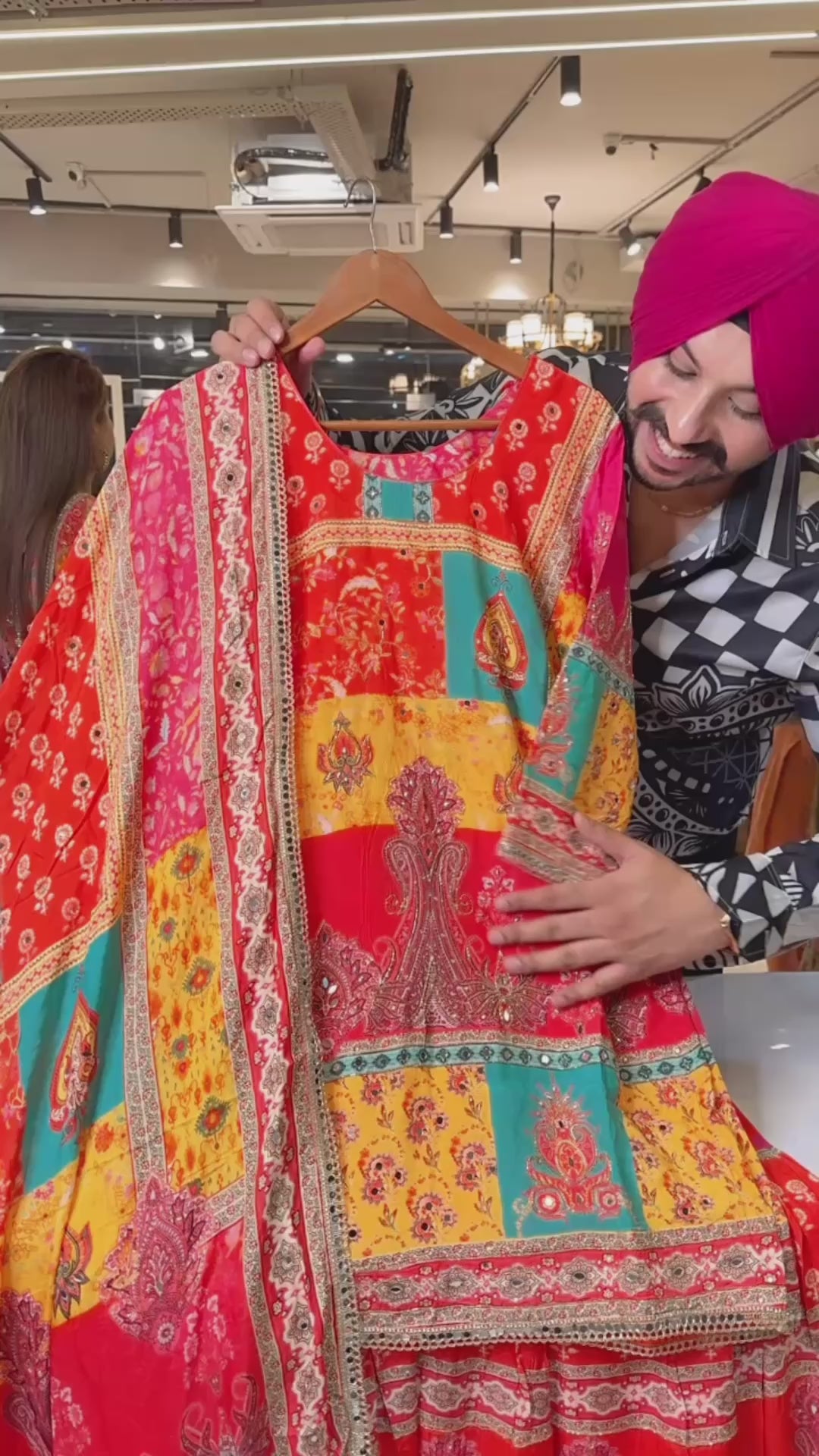 Muslin silk Multicolored Heavy Embroidered Garara Suit