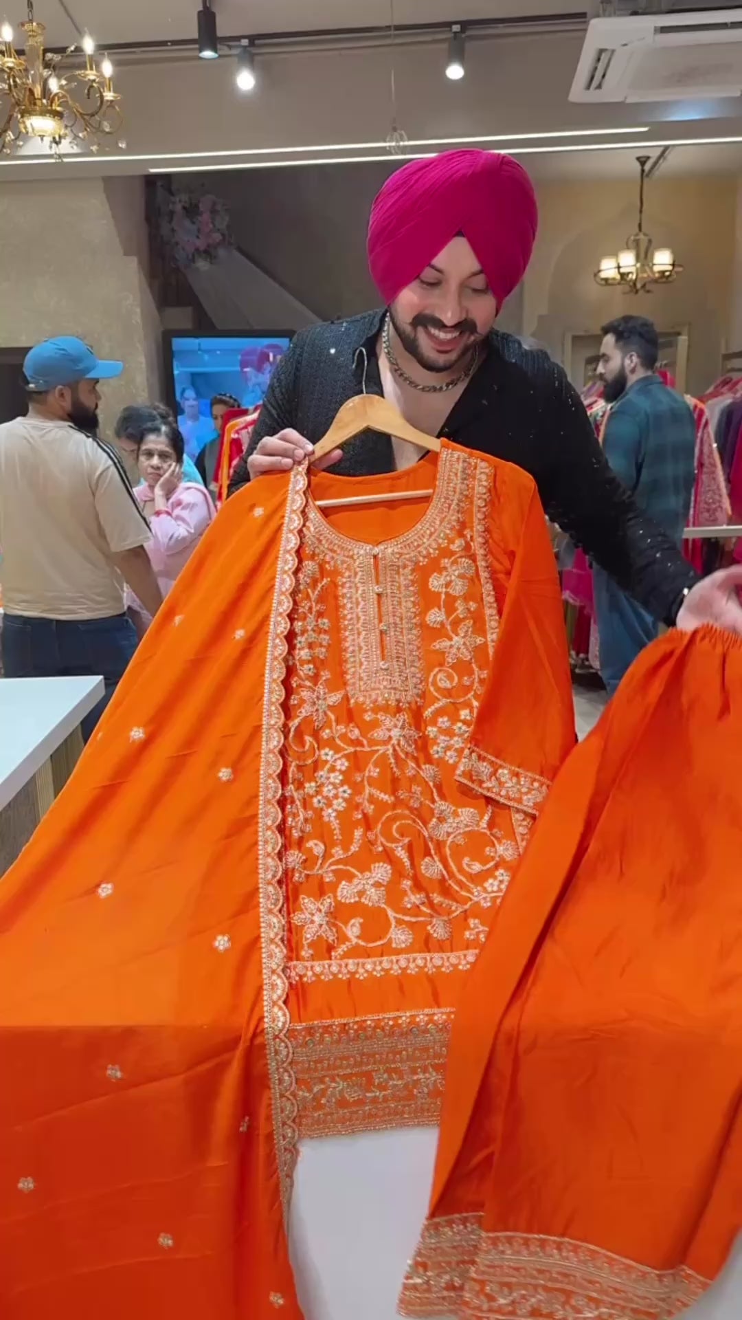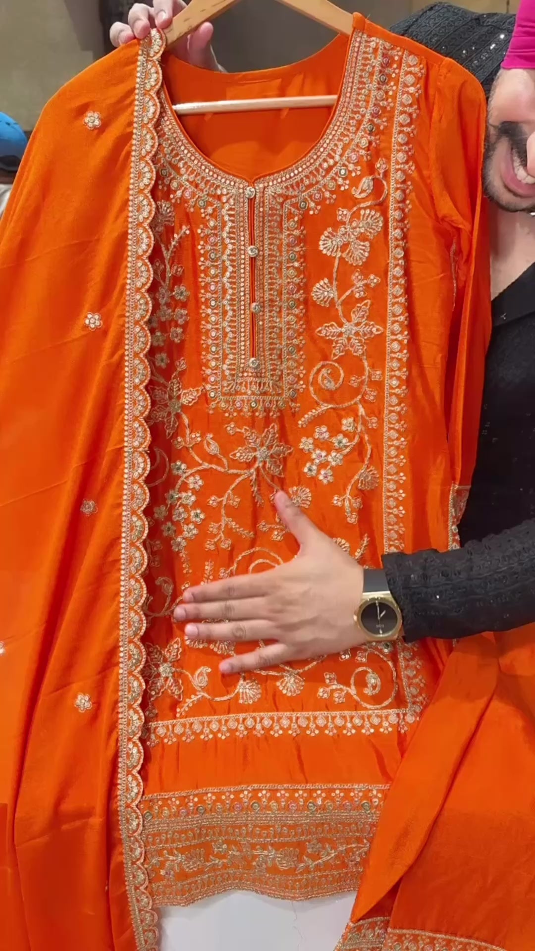 Vibrant Orange Chinon Heavy Embroidered Farshi Salwar Suit with Beautiful Duppata