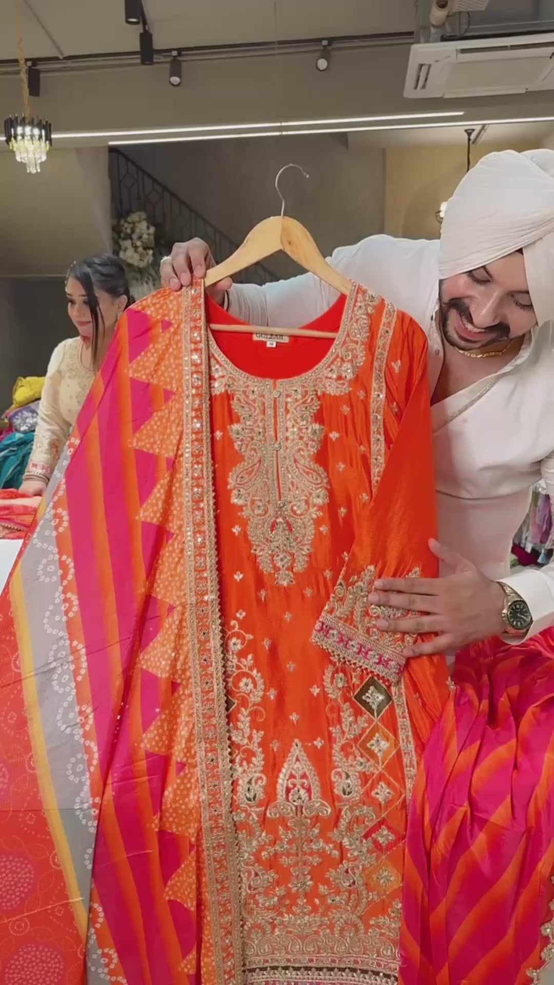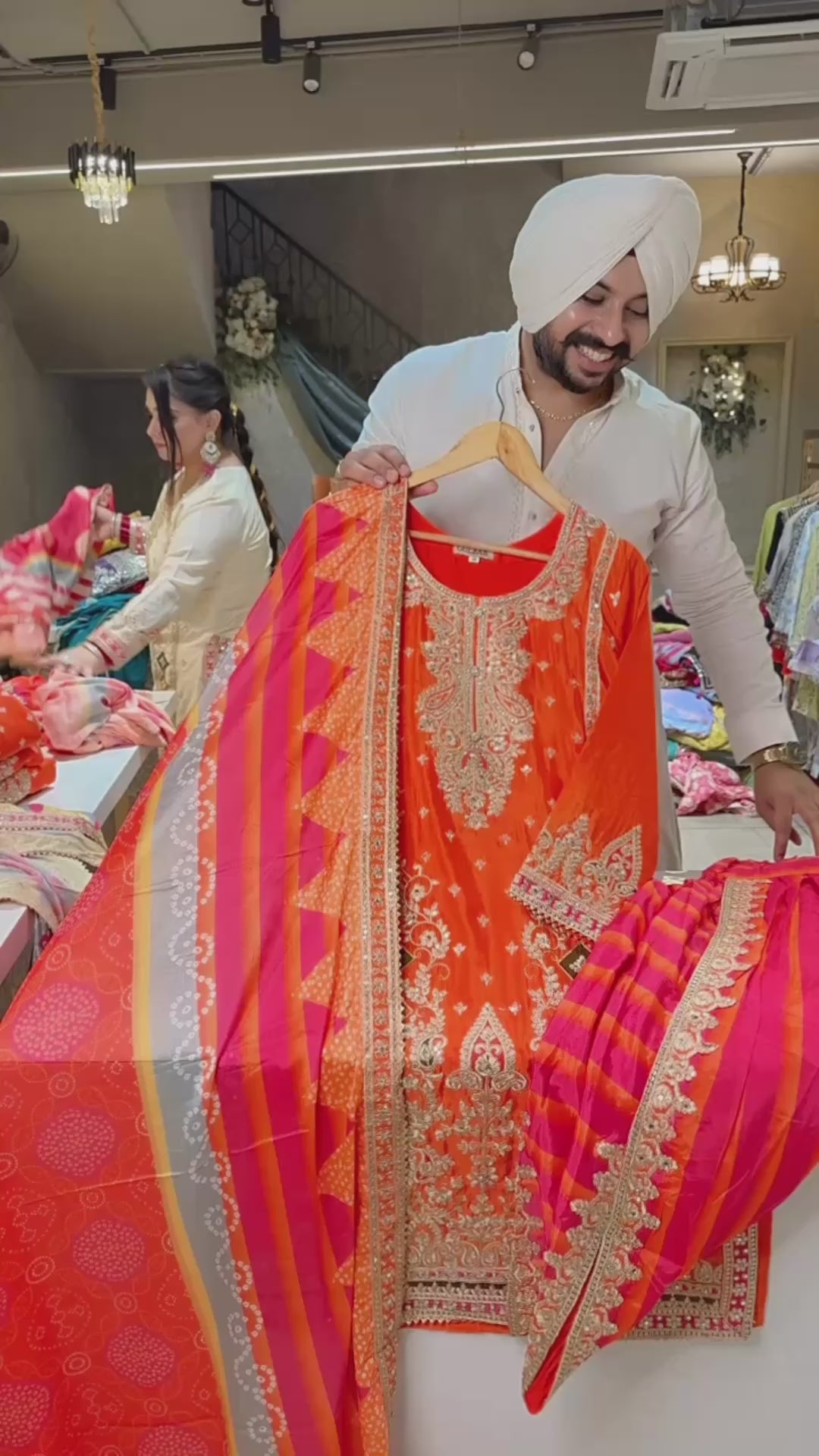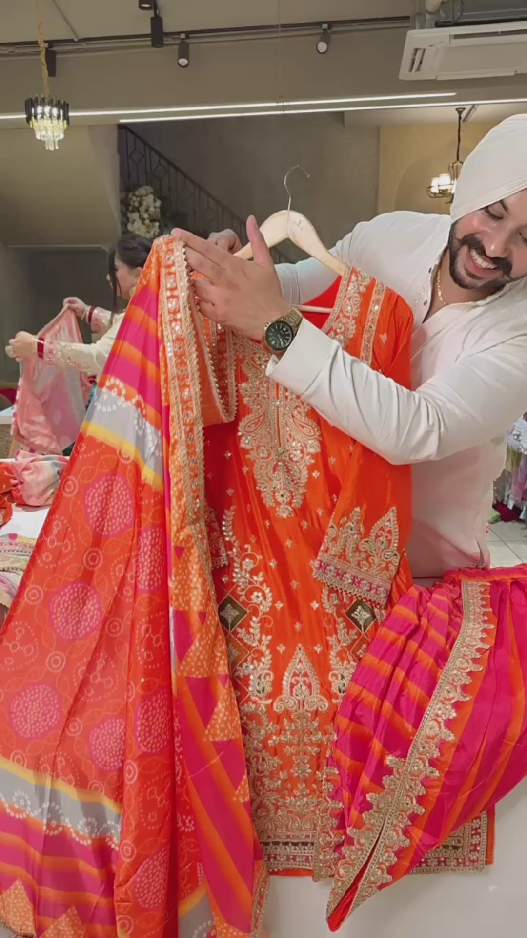 Orange Chinon heavy embroidered Dhoti suit with beautiful Duppata