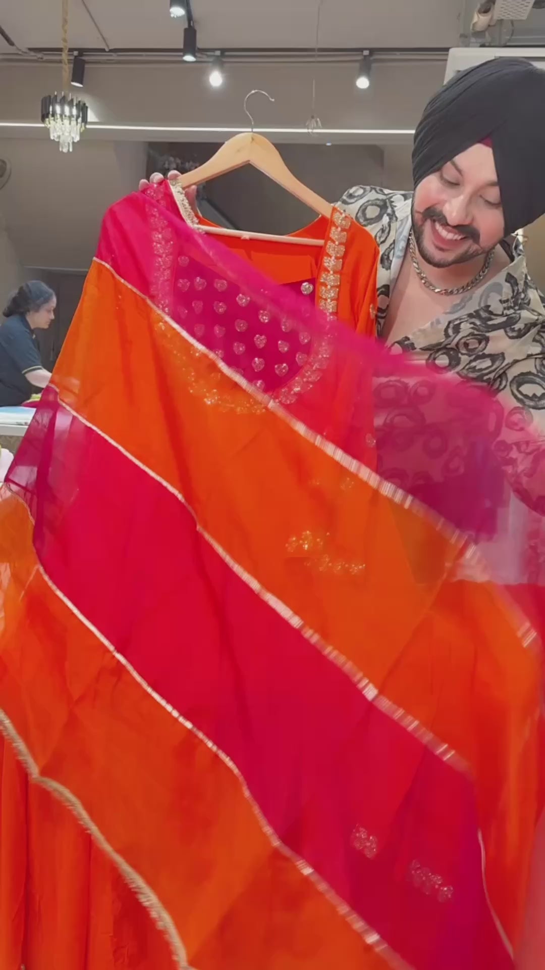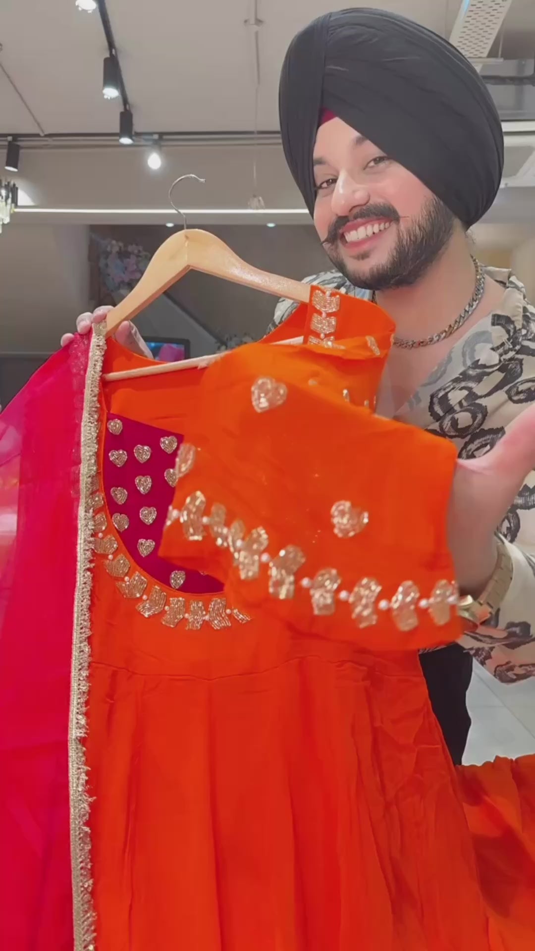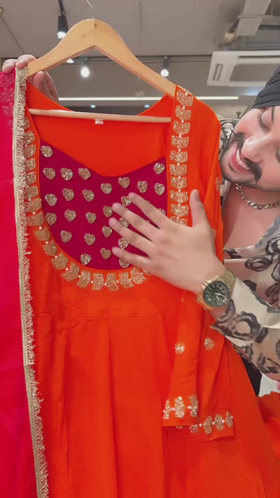 Orange Georgette Heavy Hand embroidered Party Wear Anarkali suit with Beautiful Gotta Work Organza Duppata