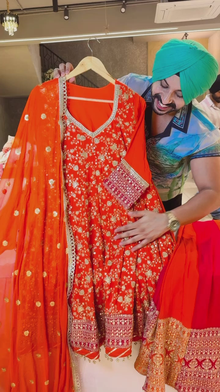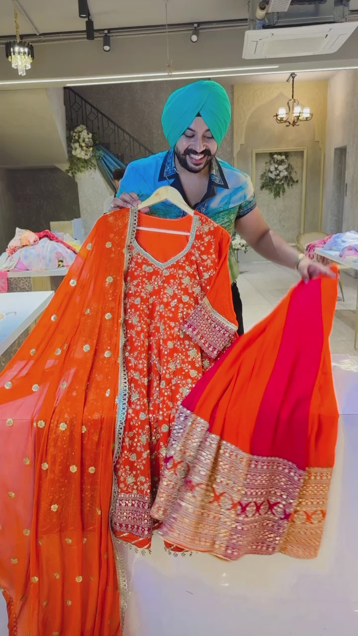 Orange Georgette Heavy Embroidered Paplum Sharara Suit