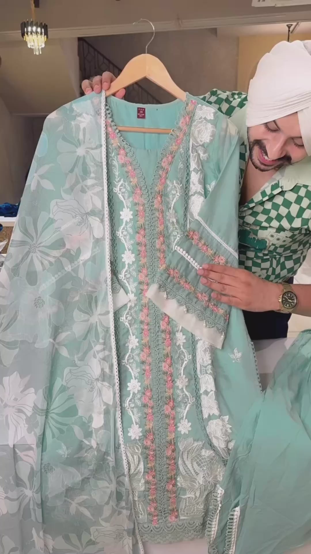 Light Sea Green Soft Organza Fully Embroidered Dhoti Suit