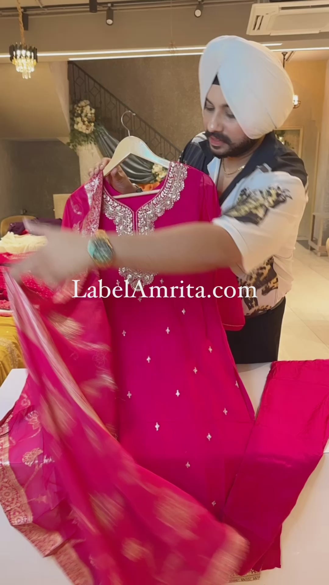Rani pink Soft organza Embroidered Straight suit With Banarasi Duppata