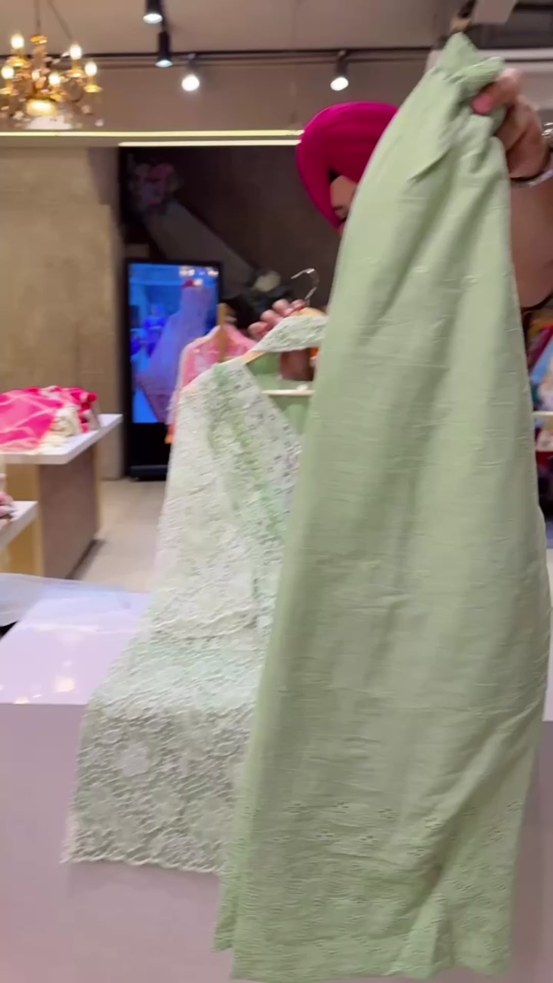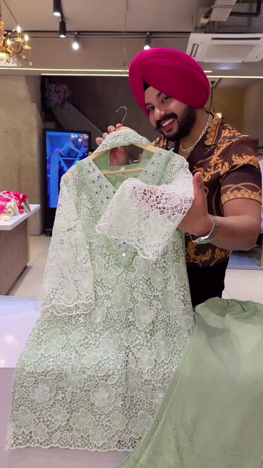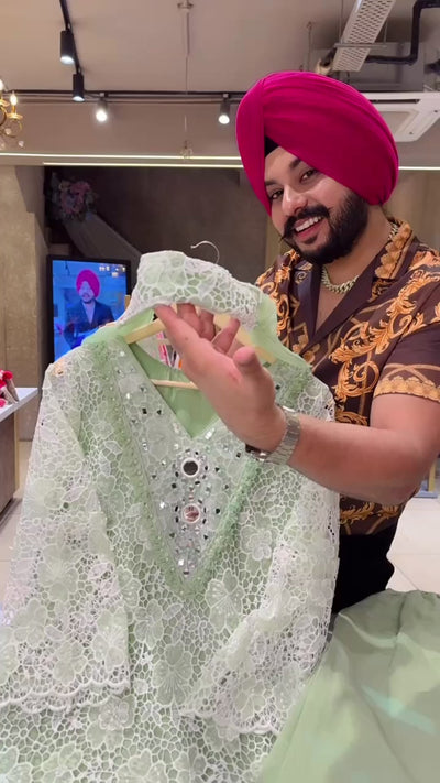 Pastel Green Heavy Crochet & Mirror Work Indowestern Girlish Suits with Sleek Necklace Duppata & Shifli Pants