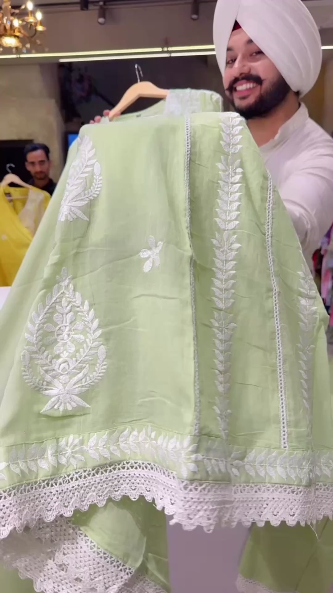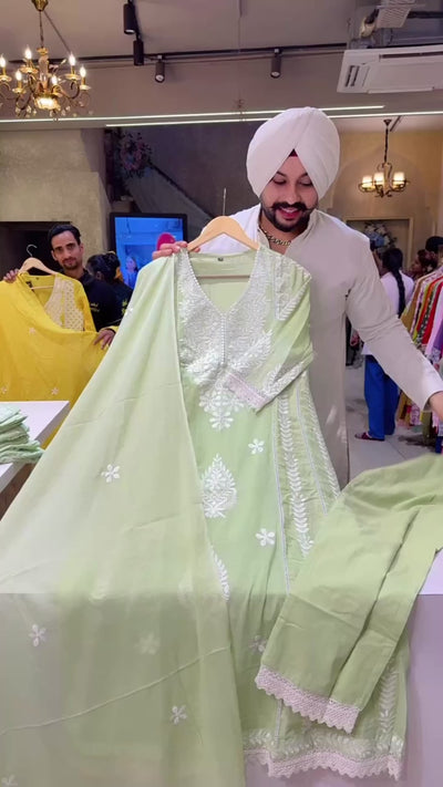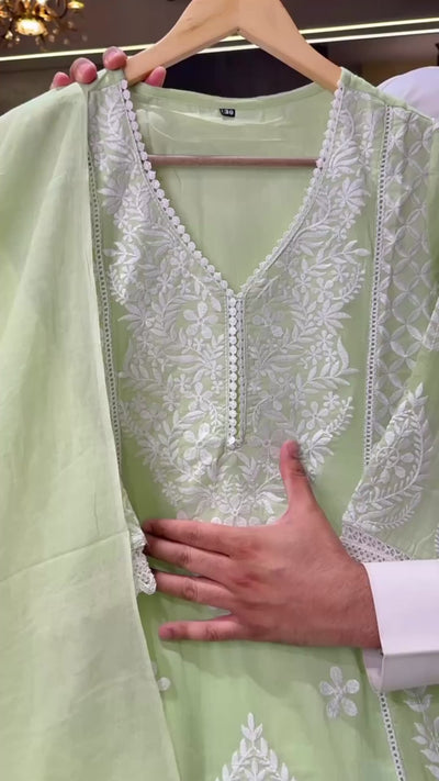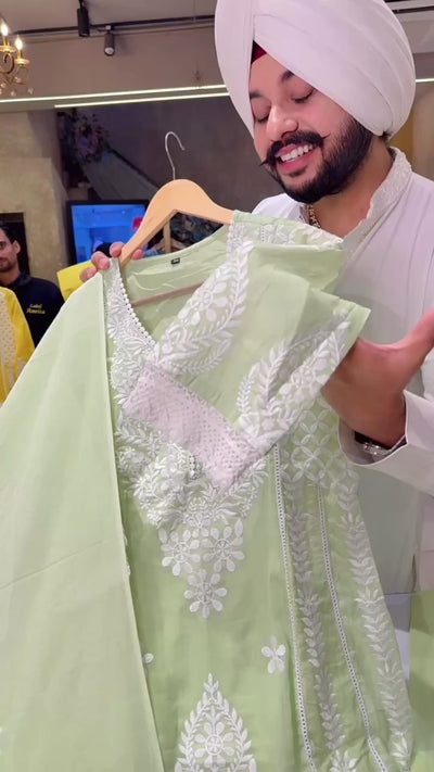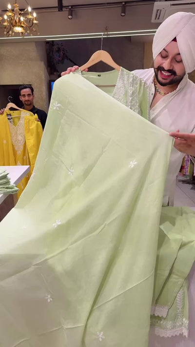 Pastel Green Mal Cotton Embroidered Semi Formal A-line Suit with Mal cotton Duppata