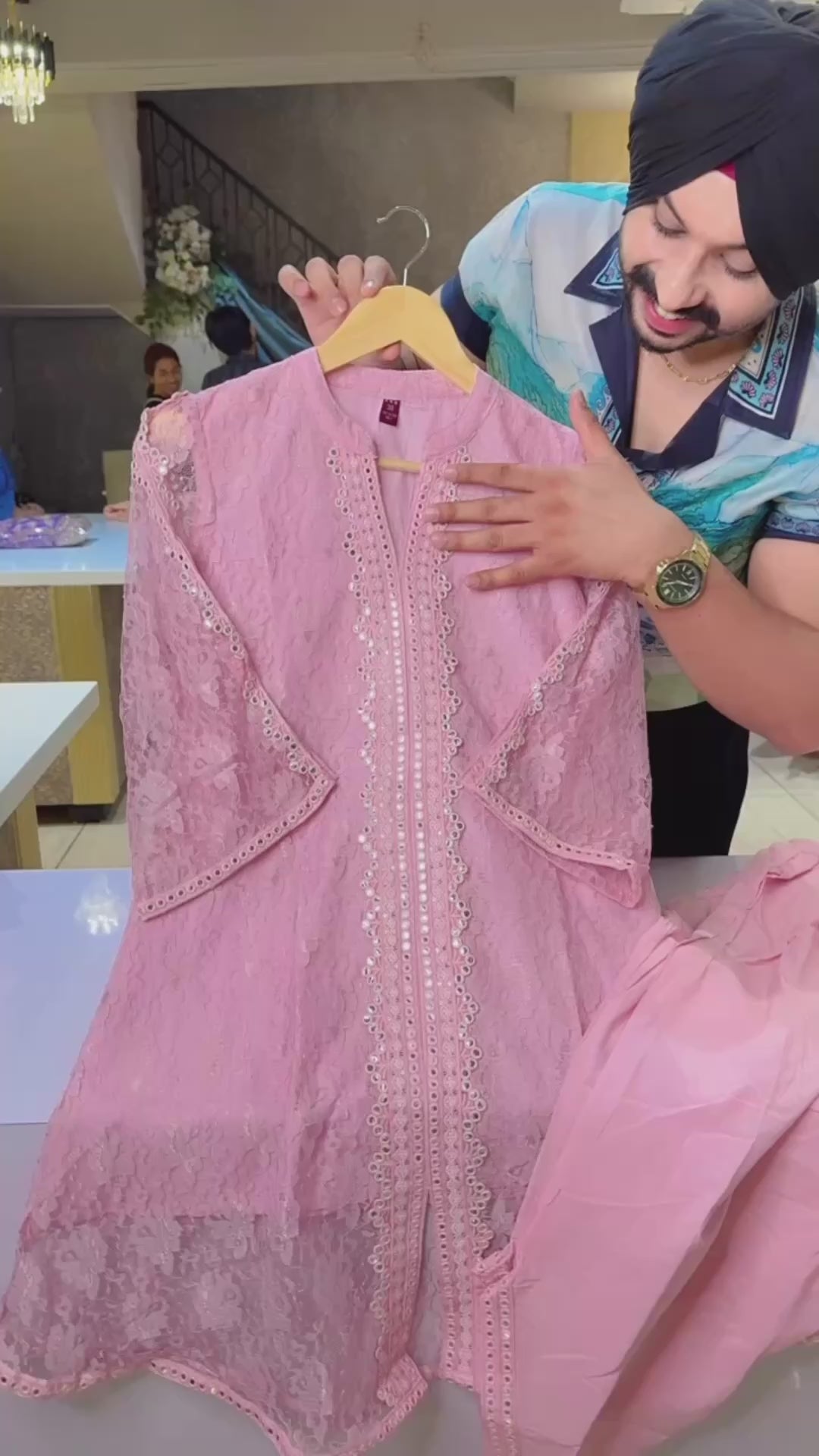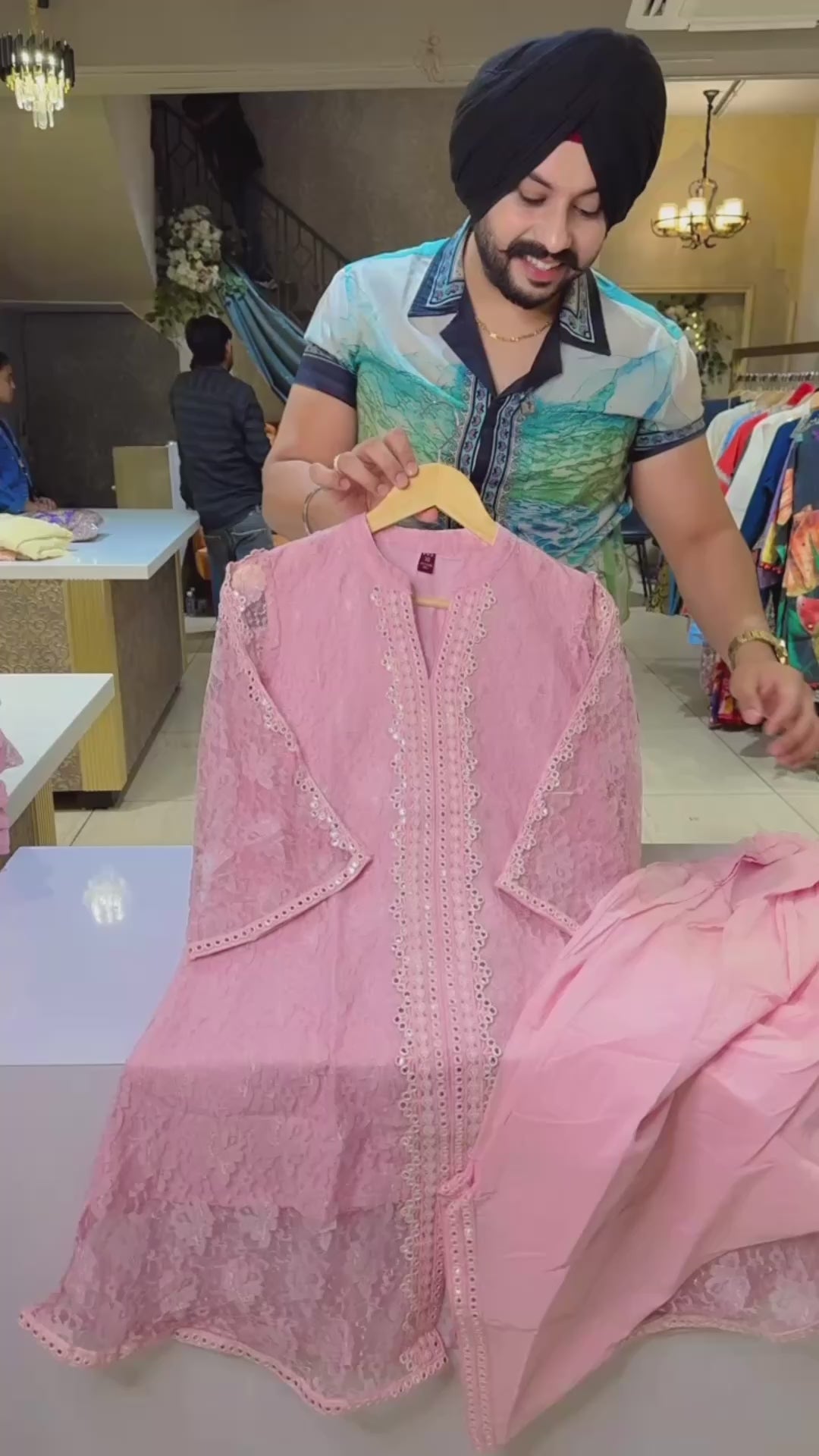 Pastel pink Crochet Lace Embroidered Dhoti Coord set