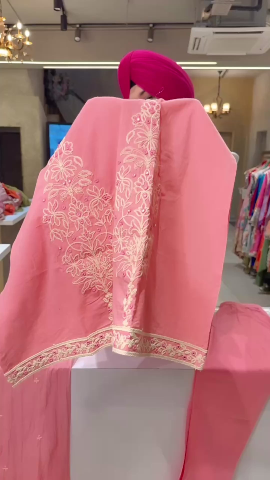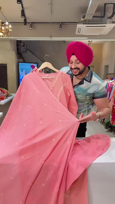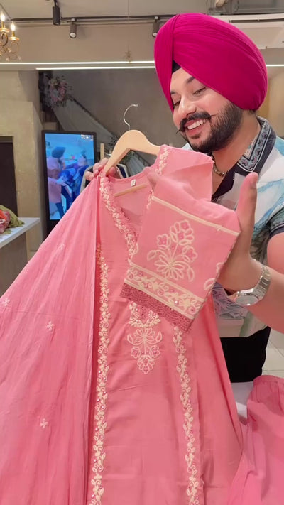 Pastel Pink Pure Cotton Fully embroidered Suit with Mal Cotton Crush Duppata
