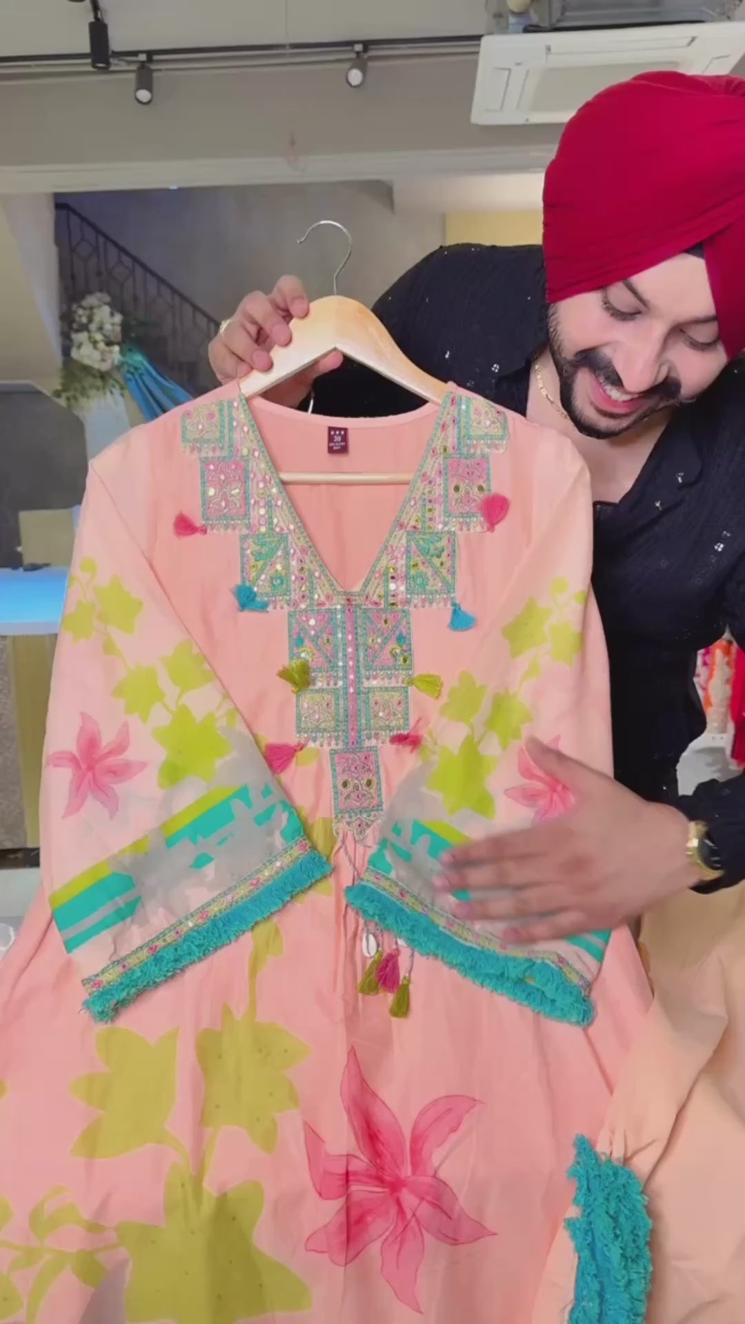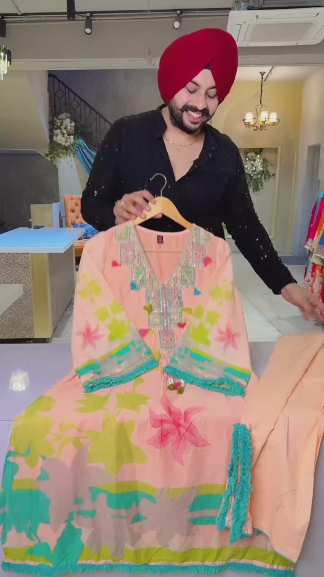 Peach Mal Cotton Embroidered Pakistani Coord set with Side Slit Pants