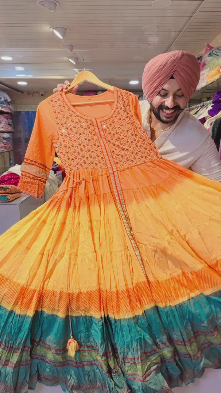 Peach Multicolored Mal Cotton Full Flair Anarkali Gown