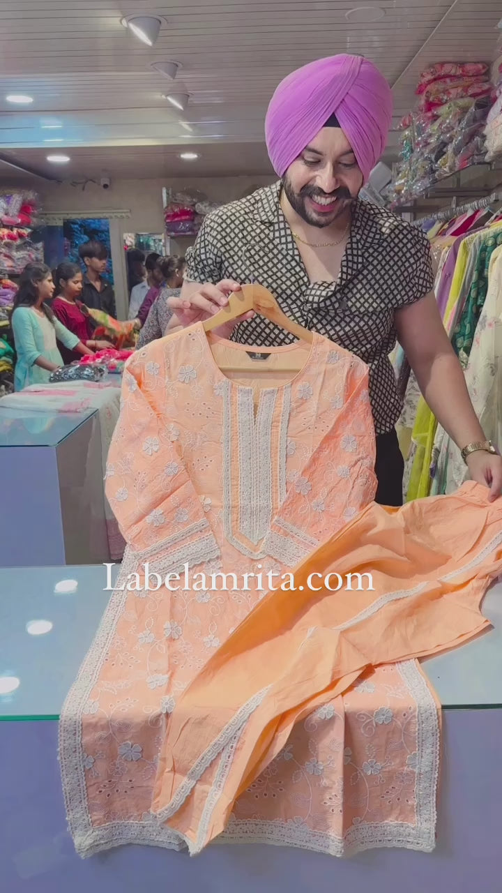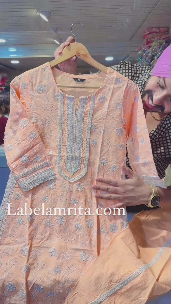 Peach Pure Cotton Embroidered Coord set with Stylish tulip pants