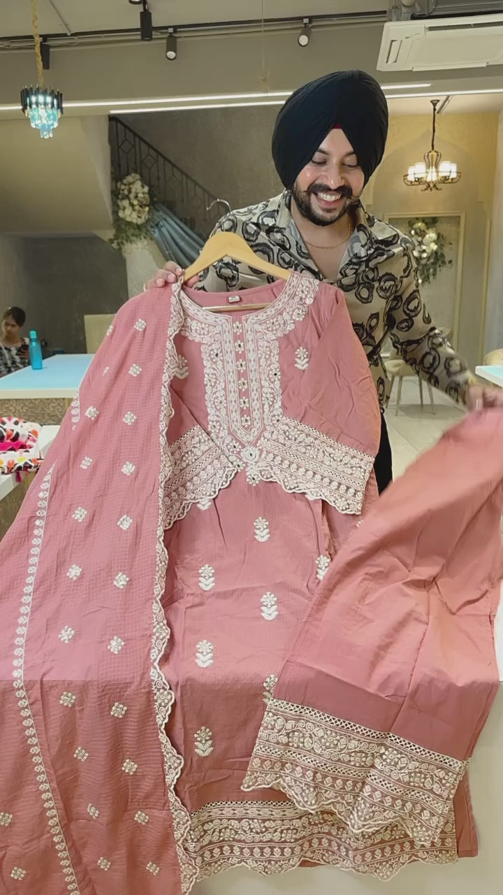 Onion Pure Cotton fully Embroidered Pakistani Plazo Suit