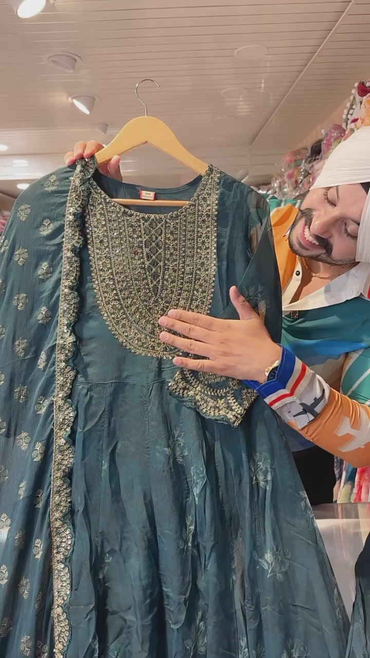 Peacock Organza Anarkali suit with Beautiful embroidery Work on Neck ,border & Duppata