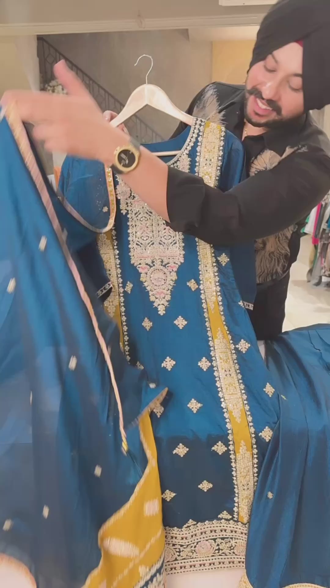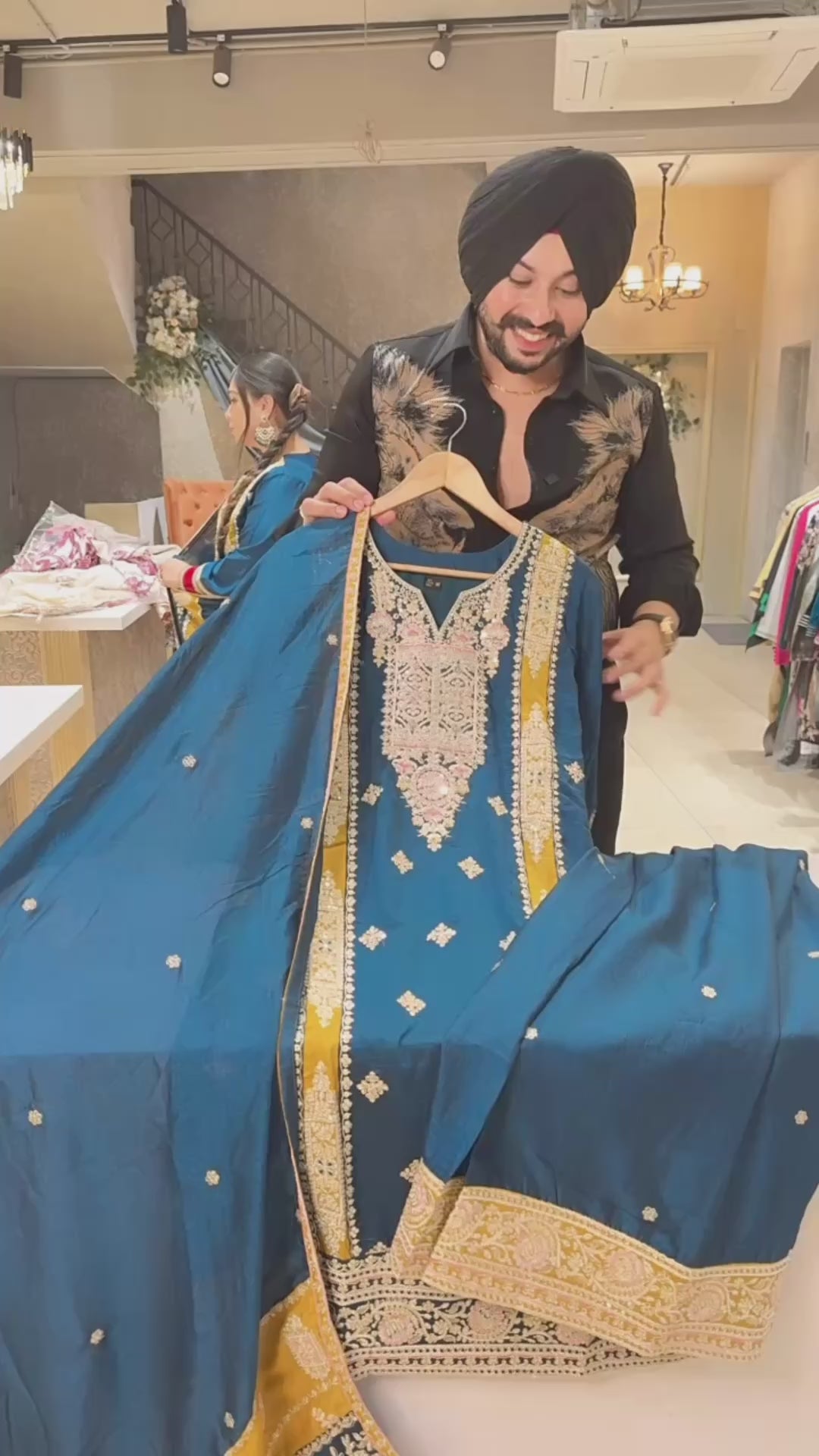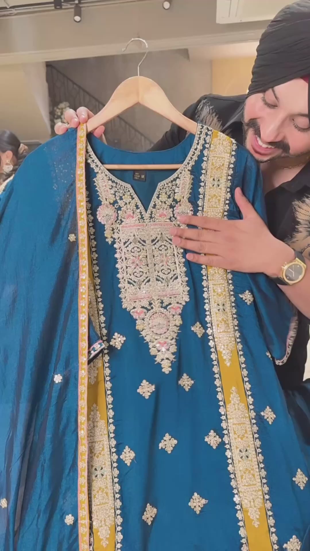 Peacock Chinon Heavy Embroidered Straight Plazo suit with Beautiful Duppata