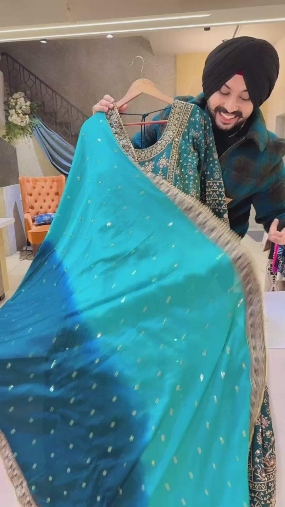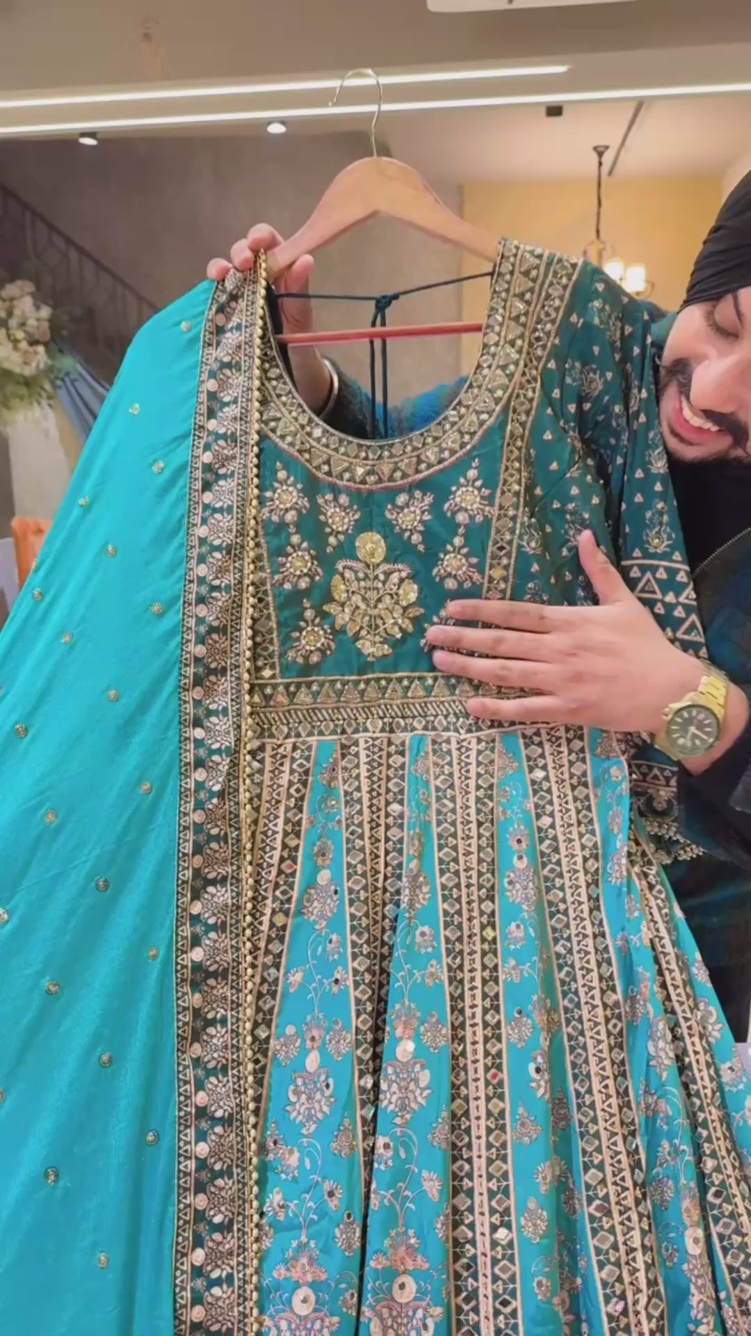 Teal Premium Crepe Heavy embroidered Tie & Dye Anarkali Gown with Sequins Work Chinon Duppata