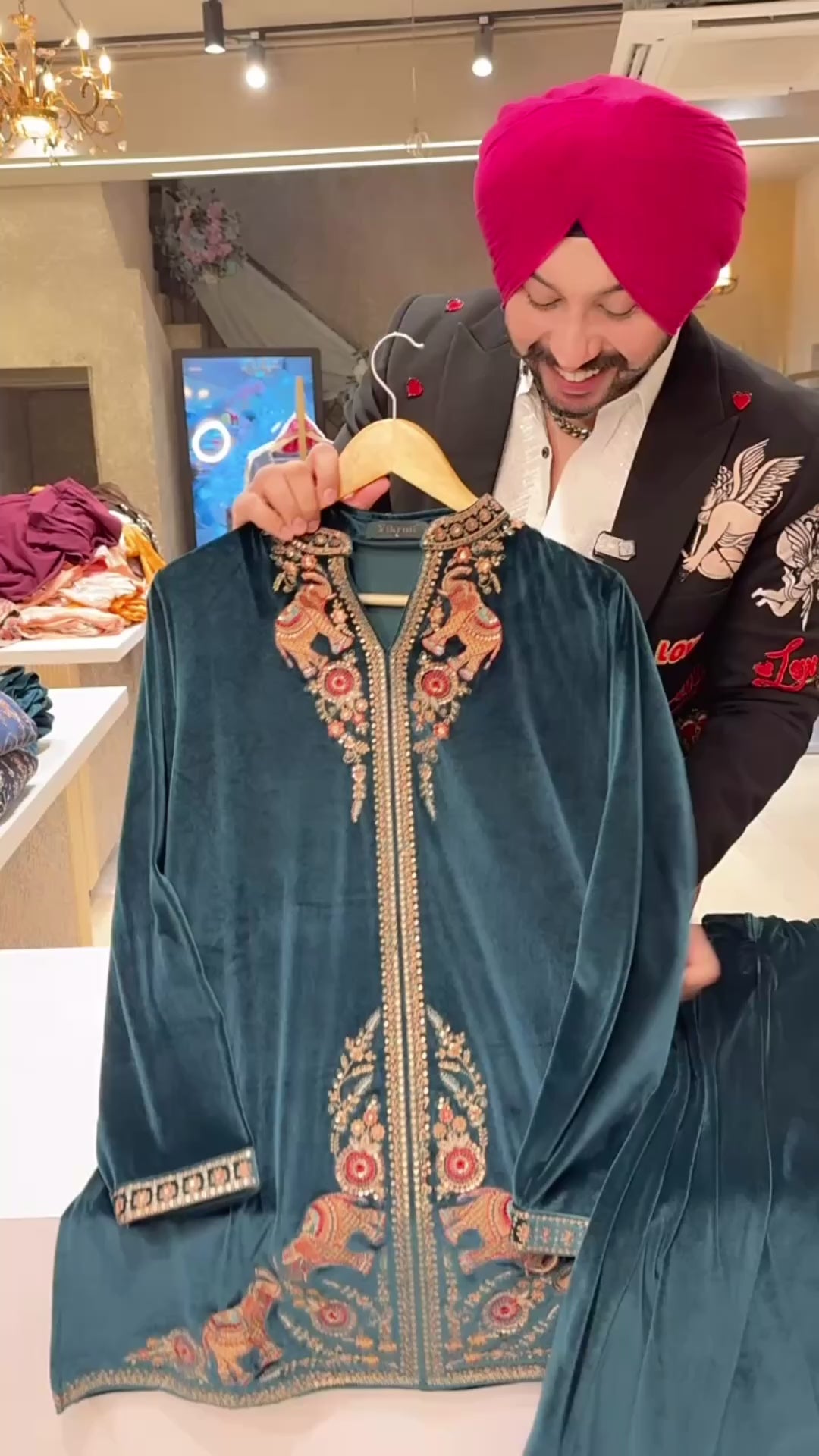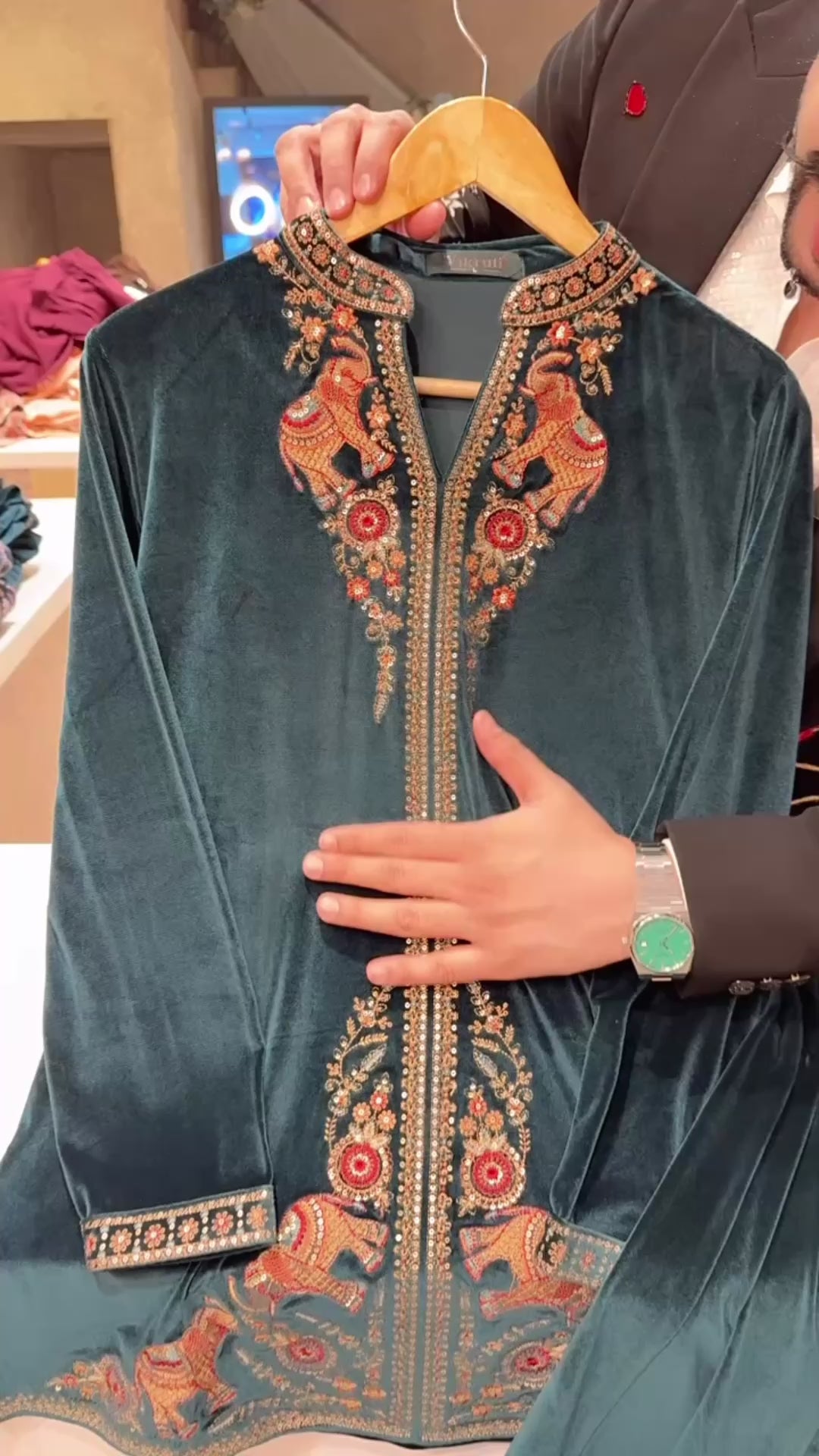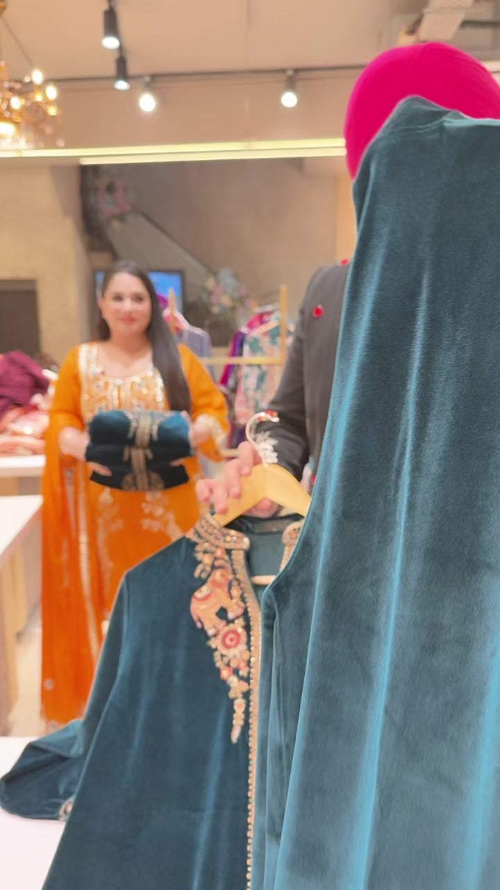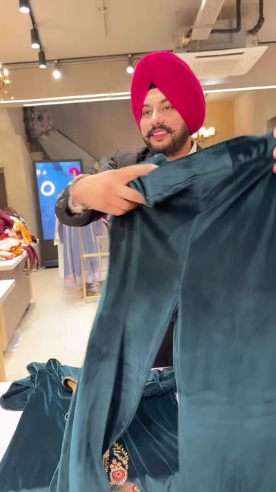 Peacock Premium Soft Velvet Heavy Embroidered Strechable Party wear Coord set