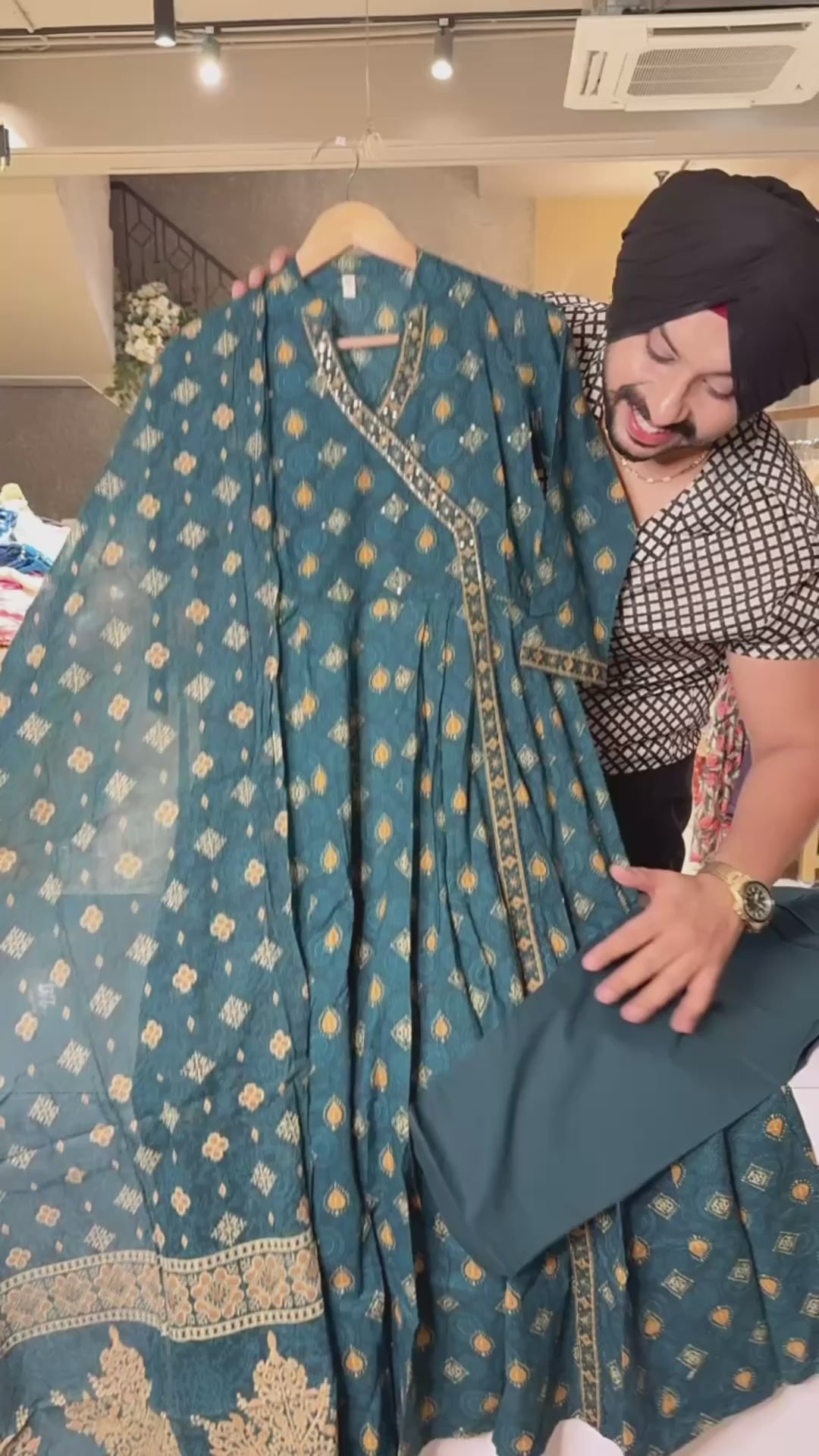 Peacock Pure Cotton Office Wear Angrakha Anarkali Suit
