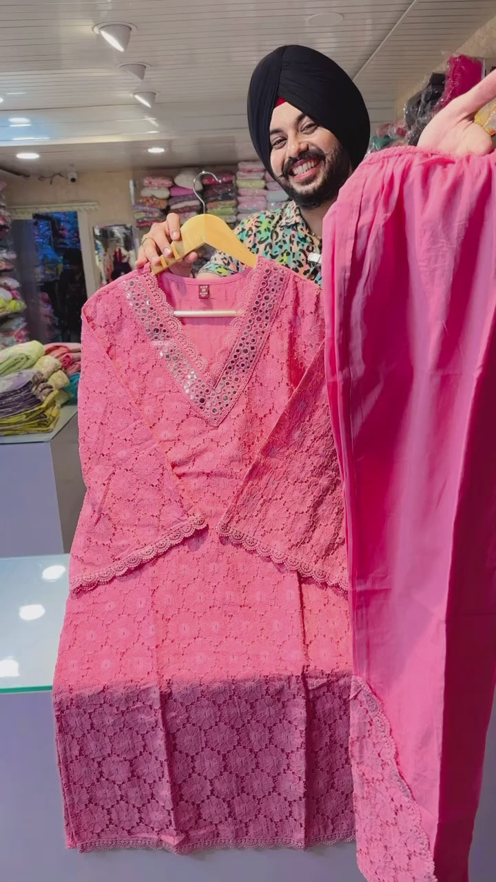 Pink Crochet Pakistani Coord set with beautiful Work on neck