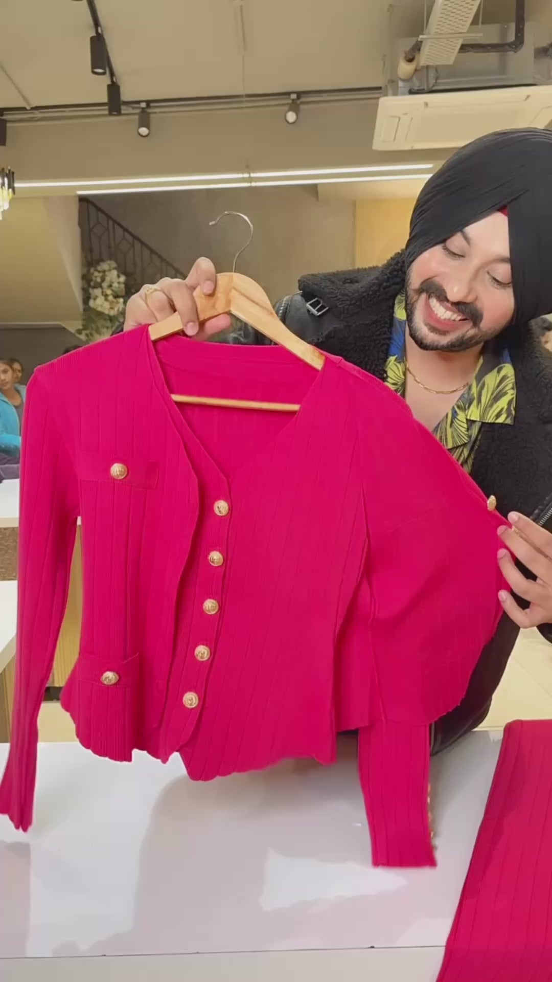 Hot pink imported Woolen 3 piece Coord set with Stylish Jacket
