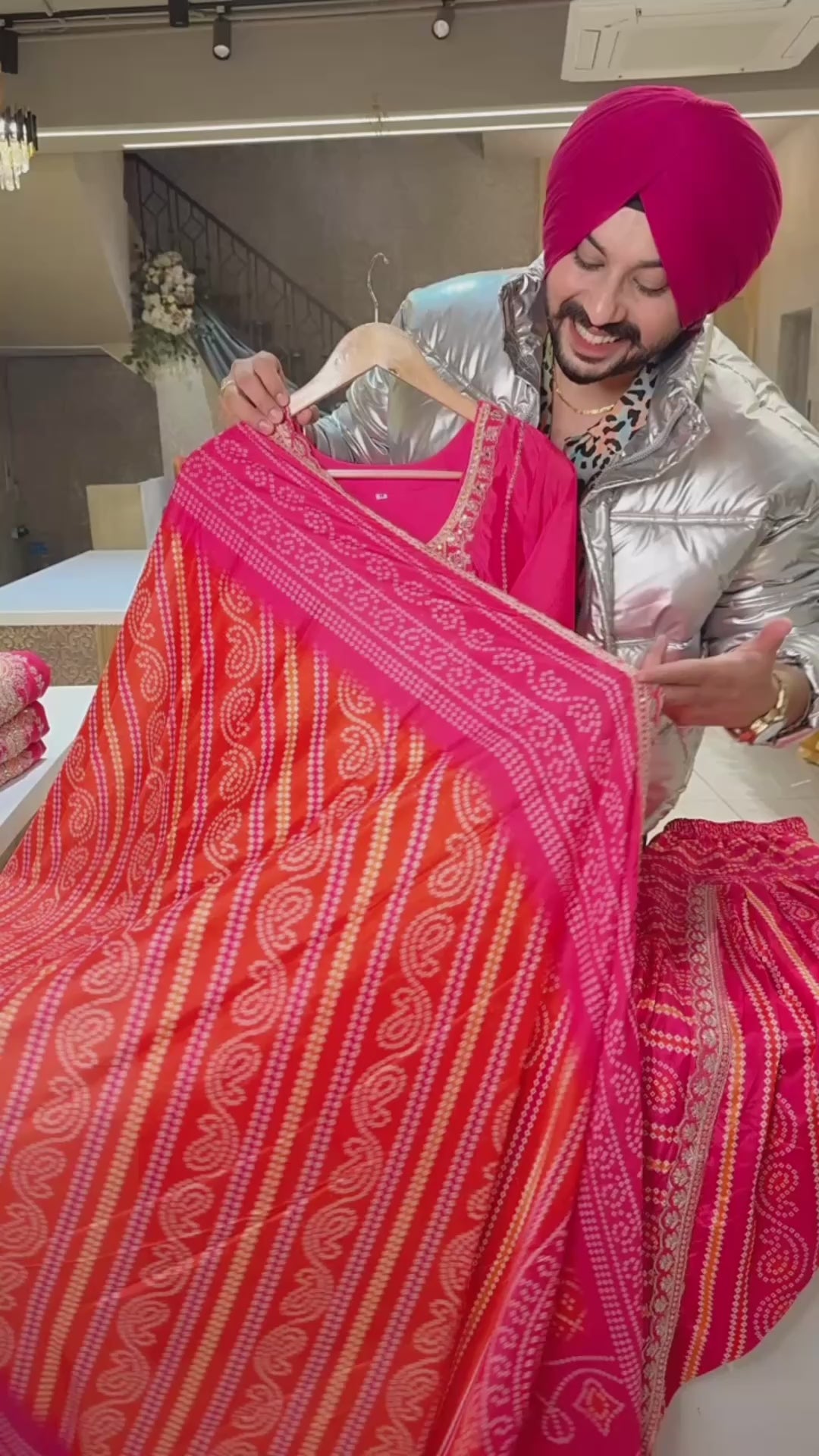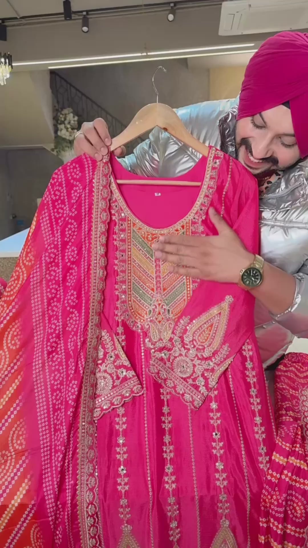 Hot pink Chinon Heavy embroidered dhoti suit with Beautiful Duppata